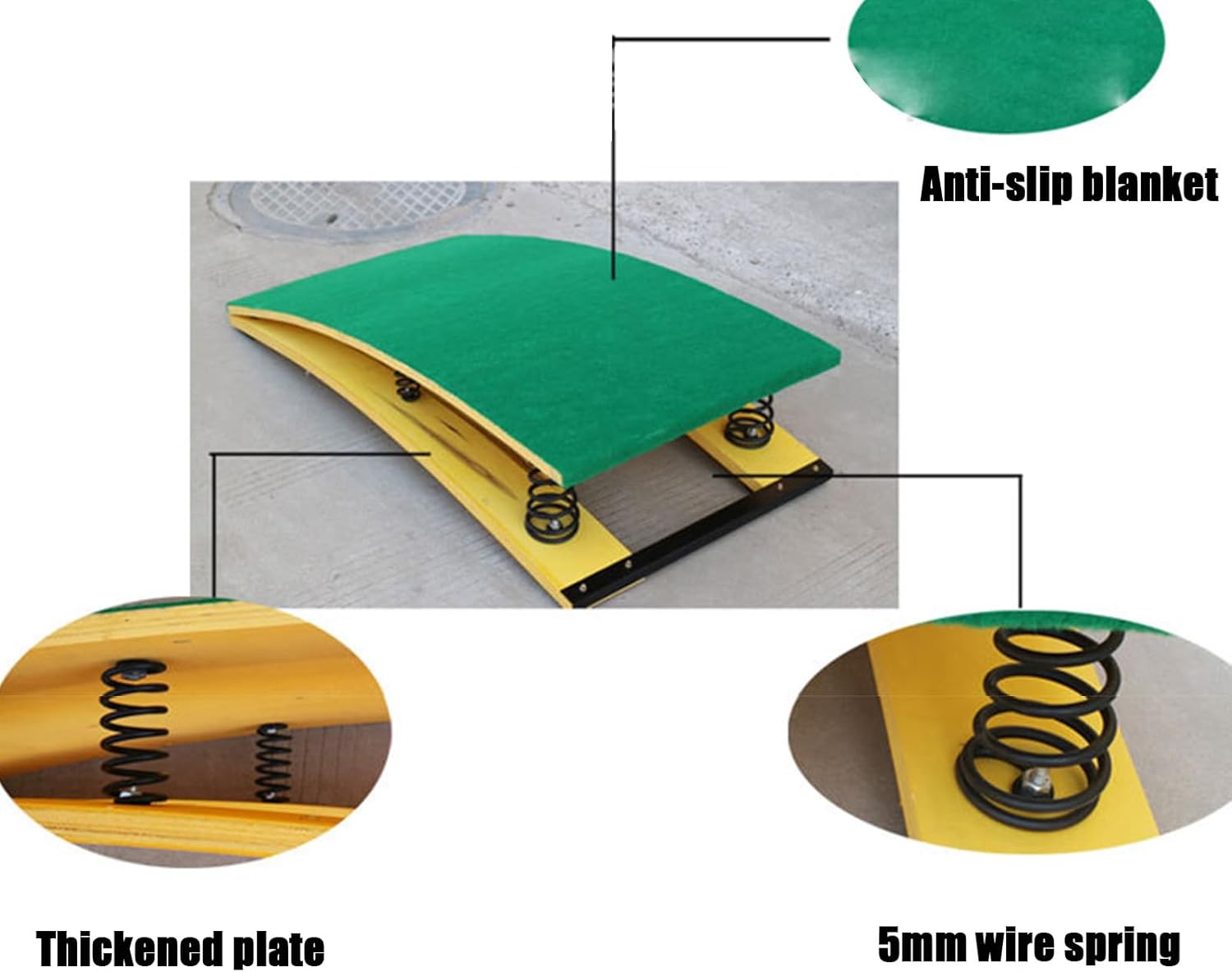 【Attrezzatura da ginnastica robusta】I nostri trampolini sono realizzati con assi di legno duro, feltro antiscivolo di alta qualità sulla superficie, molla in acciaio al manganese ispessita all'interno, forte capacità portante, nessuna deformazione, nessuna piastra in acciaio antiruggine fissata. Perfetti in qualsiasi condizione atmosferica, adatti per interni ed esterni. 【Quattro molle ad alta elasticità】: Progettato con quattro robuste molle caratterizzate da eccezionale elasticità e resilienza, questo trampolino garantisce un'esperienza sicura e confortevole. Queste molle ad alta resistenza offrono un supporto superiore, consentendo un utilizzo ottimale per varie routine di ginnastica. 【Trampolino Junior per Giovani Ginnasti】: Progettato appositamente per i ginnasti in erba, questo trampolino è la scelta ideale per i bambini che vogliono perfezionare le proprie abilità a casa. Il suo design versatile lo rende perfetto per salire sulle sbarre e praticare le discese. Con una capacità di carico massima di 65 kg / 140 libbre, offre un supporto affidabile. 【Trampolino da ginnastica】Il trampolino da ginnastica è un ausilio per il salto negli eventi di volteggio, utilizzato per migliorare le abilità di salto, esercitarsi nello sbarco e nell'atterraggio, nell'arte sportiva e nello stretching. Il trampolino aiuta gli atleti ad aumentare l'altezza del salto e supporta i movimenti tecnici complessi negli sport aerei. 【Feltro antiscivolo】La superficie del trampolino è rivestita in feltro antiscivolo e resistente all'usura, che consente ai piedi di mantenere una buona presa durante il salto, ed è sicuro e anticaduta, proteggendoci il più possibile dagli infortuni. Non pungerà i piedi anche se sei a piedi nudi.