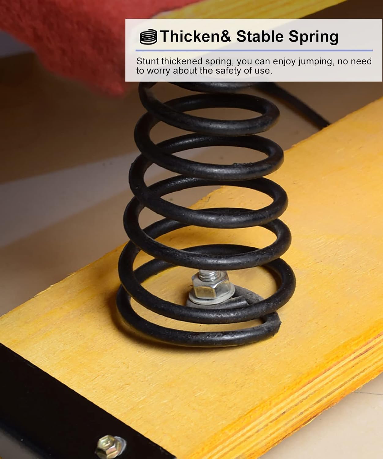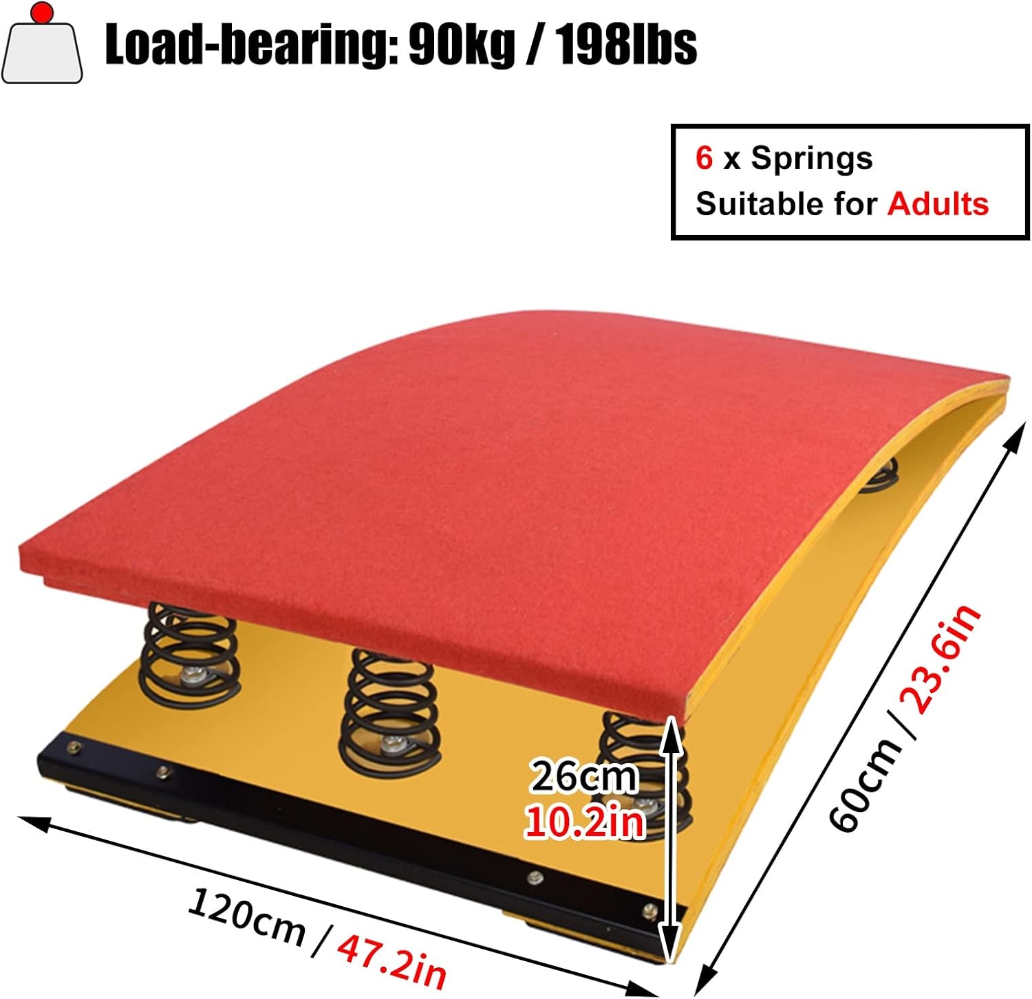 【Comodo e con elevata capacità di rimbalzo】Questo trampolino da ginnastica è realizzato in legno duro liscio e senza sbavature; rivestito con un tappeto antiscivolo imbottito e una molla in acciaio al manganese ispessita all'interno. 【Supporto per chi indossa scarpe e NON】Il tappeto superiore comodo e antiscivolo consente ai piedi di aderire bene durante il salto e fornisce anche una superficie confortevole. Non ti farà formicolare i piedi, anche se sei a piedi nudi. 【Progettato per adulti】Questo trampolino standard da 120 x 60 x 26 cm/47,2 x 23,6 x 10,2 pollici (lunghezza x larghezza x altezza) è per adulti. Può sopportare un peso di 90 kg/198 libbre. 【6 molle in acciaio ad alta resistenza】La pedana elastica Junior Size è dotata di 6 molle. Elevata tenacità, elasticità e resilienza delle molle ispessite, sicura e durevole, reattiva e riduce notevolmente l'affaticamento degli atleti. 【Trampolino sportivo e riabilitazione corporea】Non è solo un attrezzo ginnico utilizzato per migliorare la tecnica del volteggio a cavallo, la pratica dello sbarco e dell'atterraggio, l'arte sportiva e lo stretching. È anche uno strumento medico, per lo stretching prima e dopo l'allenamento, utile per il recupero da infortuni e dolori a piedi e caviglie.