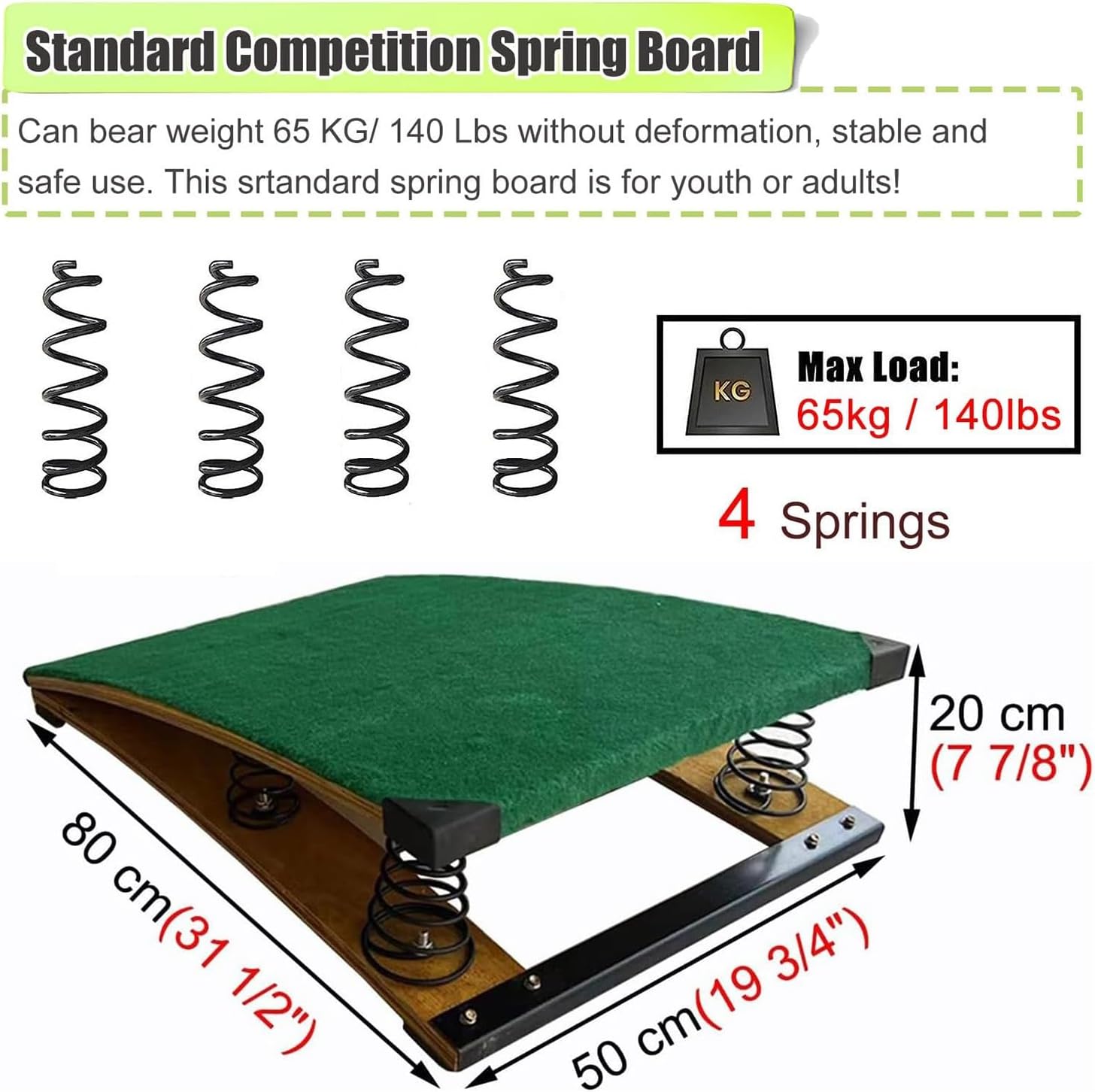 Robusto e: la piastra a molla è realizzata in legno massello e la superficie è realizzata in feltro antiscivolo di alta qualità, antiscivolo, assorbente del sudore, sicuro, stabile, indeformabile e non danneggia i piedi. Molla ad alta tenacità: questo trampolino sportivo è realizzato con una molla ad alta tenacità, che ha una buona elasticità e non si arrugginisce o si deforma facilmente, offrendo una migliore sensazione di rimbalzo. La tavola di legno e la molla sono fissate con una piastra in acciaio ispessito e viti. Il cuscinetto in plastica con scanalature antiscivolo nella parte inferiore del trampolino è sicuro e non si muove. Tappetino antiscivolo in gomma: un tappetino antiscivolo scanalato è posizionato sul fondo di questo trampolino da ginnastica per aumentare la resistenza al contatto e prevenire lo scivolamento. Può essere utilizzato con sicurezza. I quattro angoli della pedana sono inoltre protetti da gomma per evitare collisioni. USI MULTIPLI: Questo eccellente trampolino può essere utilizzato non solo per arti sportive, bilanciere, esercizi di capriole, stretching, allenamento a ostacoli, allenamento di atletica leggera, ma può anche migliorare la forma del corpo, rafforzare i muscoli e migliorare la coordinazione del corpo. 【Servizio】I nostri prodotti vengono rigorosamente selezionati prima della spedizione, ci impegniamo per una maggiore soddisfazione. In caso di domande sul nostro prodotto, non esitate a contattare il nostro team di assistenza clienti