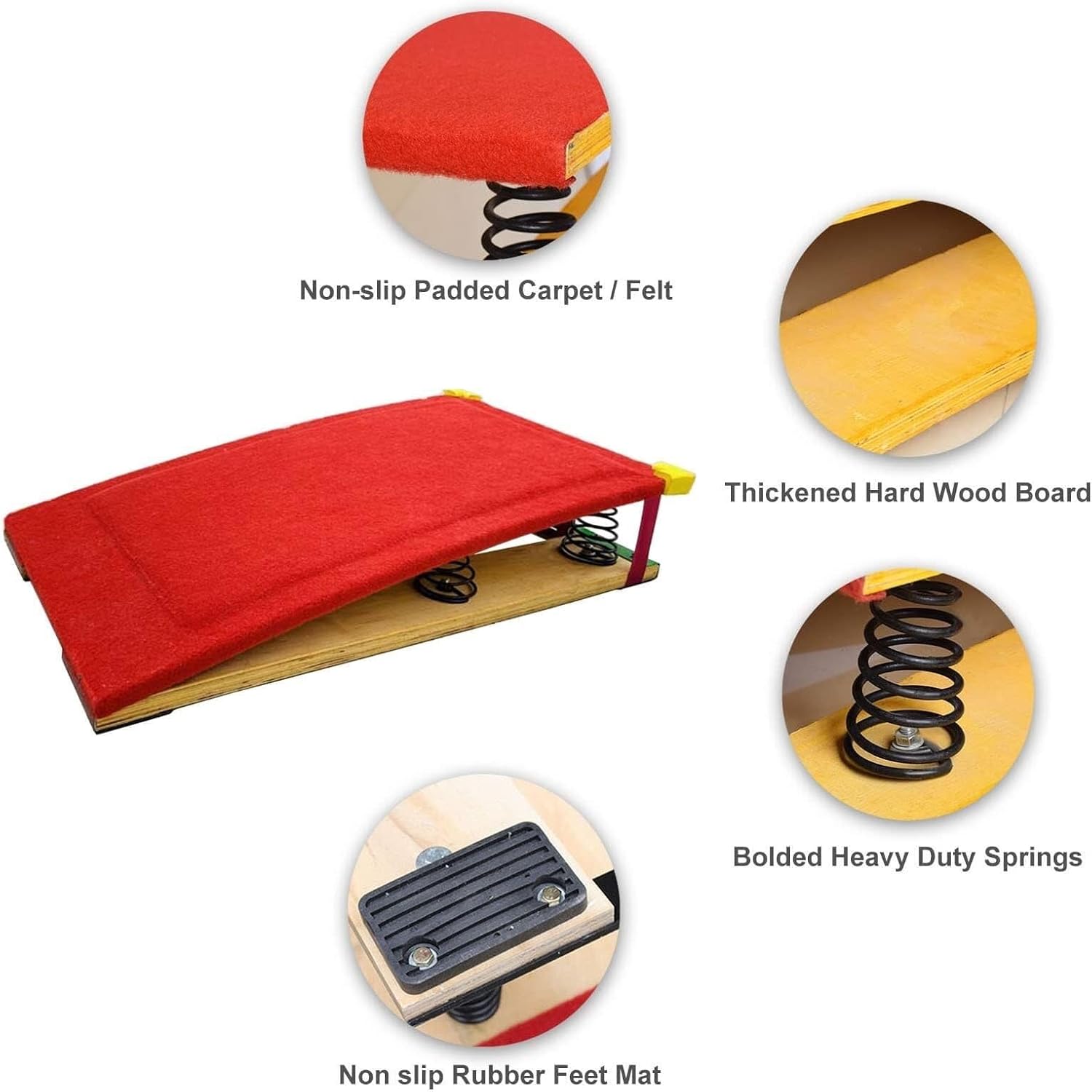 Struttura stabile: realizzato in legno massello con una forte capacità di carico, questo trampolino è liscio, resistente e facile da manutenere, garantendo una superficie di allenamento stabile e sicura. Molle ad alta elasticità: dotato di 4 molle in acciaio ad alta tenacità, questo trampolino offre rimbalzo ed elasticità, consentendo prestazioni di salto e capriole migliorate con il minimo affaticamento. Design antiscivolo e sicuro: il trampolino è dotato di un cuscinetto in plastica antiscivolo con scanalature antiscivolo nella parte inferiore, che ne garantiscono la stabilità durante l'uso, offrendo maggiore sicurezza durante gli esercizi. Ideale per bambini e adolescenti: con una capacità di carico di 65 kg (143 libbre), questo trampolino di dimensioni ridotte è perfetto per bambini e adolescenti, progettato per migliorare le abilità ginniche, tra cui volteggi, atterraggi da sgancio e molto altro. Strumento di allenamento versatile: ideale per ginnastica prescolare, Pilates, yoga, stretching e arti fisiche, questo trampolino è un'aggiunta ideale a qualsiasi palestra domestica, centro di ginnastica o club sportivo.