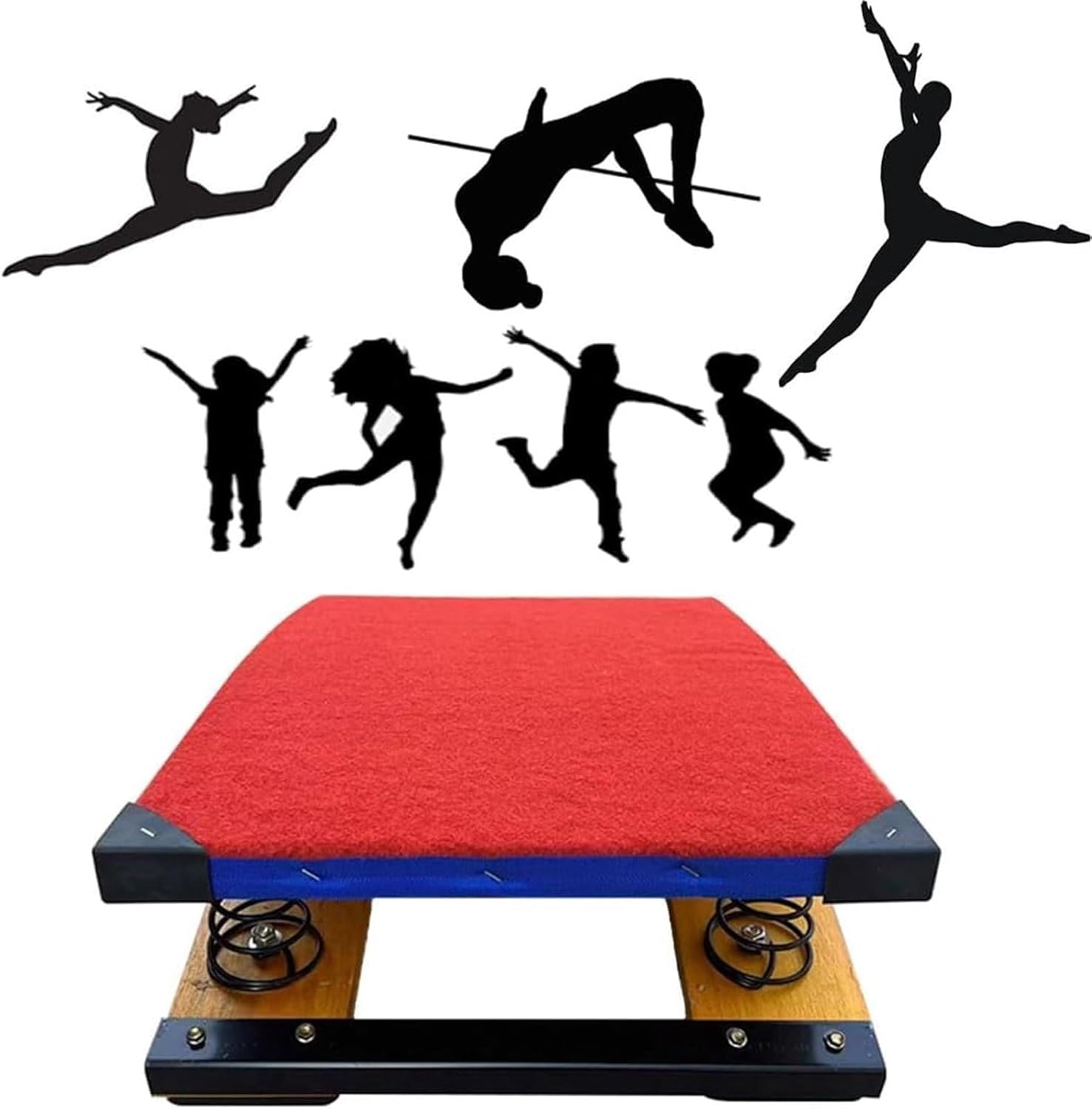 Ausilio per l'allenamento di ginnastica: progettato per aiutare bambini, adolescenti e adulti a migliorare l'altezza del salto e a eseguire movimenti aerei complessi in modo sicuro. Struttura in legno: realizzata in legno duro spesso con collegamenti a molla ad alta tenacità, che offre un supporto forte, stabilità e un uso duraturo. Diverse misure e stili: disponibili nelle misure 40×60 cm, 50×80 cm, 60×120 cm con 2, 4, 6 o 9 molle per soddisfare diverse fasce d'età e livelli di allenamento. Superficie in feltro antiscivolo: la superficie superiore è dotata di feltro resistente all'usura per un appoggio sicuro, mentre il cuscinetto scanalato sul fondo impedisce il movimento e protegge il pavimento. Utilizzo versatile: ideale per esercizi di ginnastica, salto in alto, salto in lungo, capriole e allenamento atletico a casa o a livello professionale.