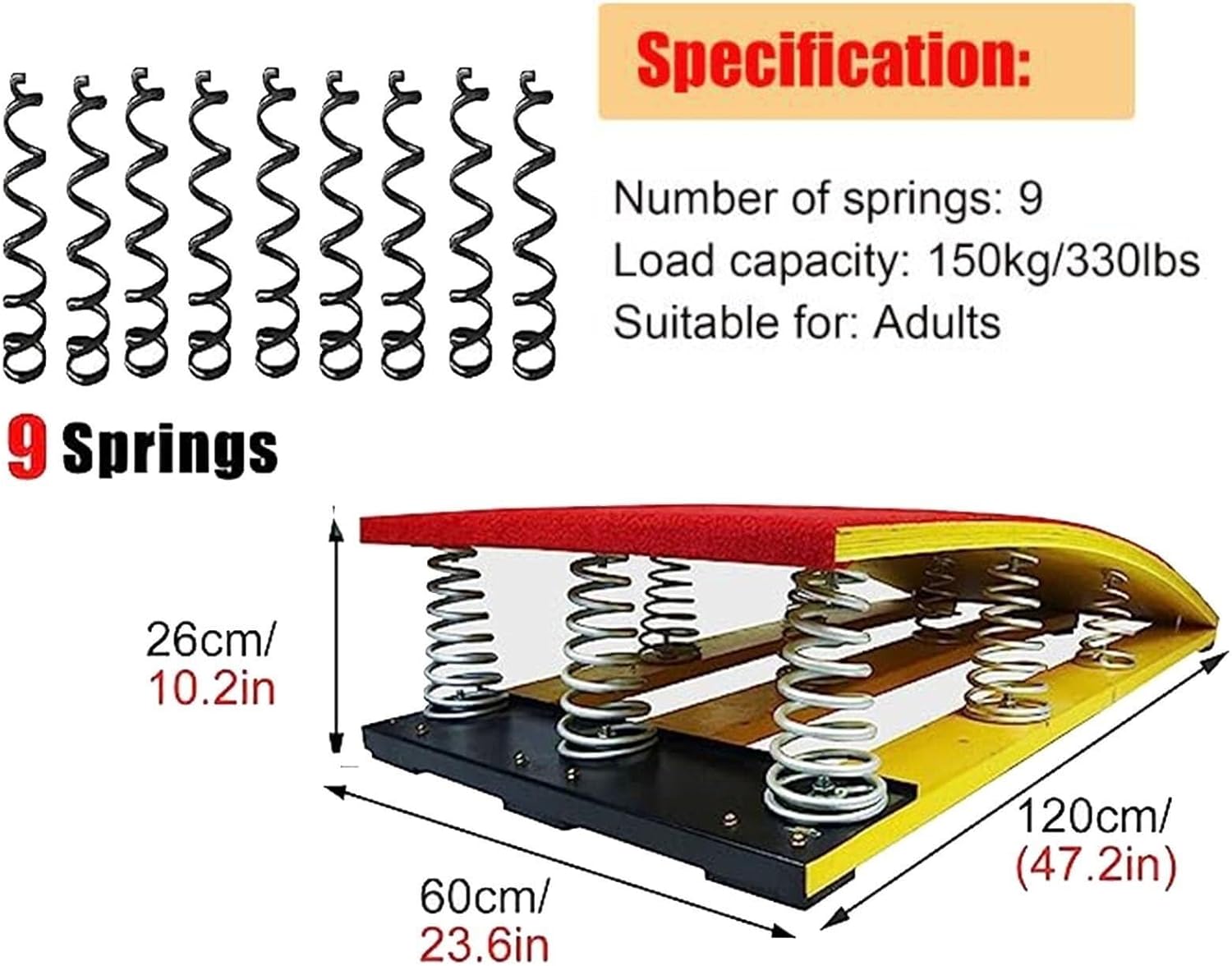 Trampolino da Ginnastica, Trampolino da Allenamento Sportivo con 9 Molle per Adulti e Adolescenti, Salto mortale All'Indietro, rampa Elastica Curva