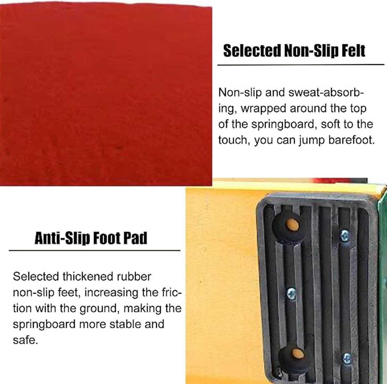 Resistente e stabile: realizzato in legno robusto per garantire una struttura durevole e rivestito in feltro per impedire agli atleti di scivolare durante il salto, offrendo un ambiente di allenamento e competizione affidabile. Elasticità e prestazioni di rimbalzo: realizzato in materiale elastico con buone prestazioni di elasticità e rimbalzo, garantisce agli atleti una spinta sufficiente durante il salto per eseguire manovre più difficili. Migliora le capacità di salto: grazie alla sua struttura elastica ben progettata, può migliorare la capacità di salto degli atleti e farli rimanere in aria più a lungo, in modo che abbiano l'opportunità di completare movimenti ginnici più complessi. Facile da trasportare: il trampolino da ginnastica è progettato per essere leggero e facile da trasportare, il che è comodo per gli atleti, sia per cambiare sede di allenamento che per prepararsi alle gare. Molteplici utilizzi: oltre all'allenamento e alle gare di ginnastica, può essere ampiamente utilizzato anche in altri sport che richiedono l'assistenza del salto, come i tuffi, il trampolino, ecc., dimostrando il suo potenziale di applicazione flessibile e versatile.