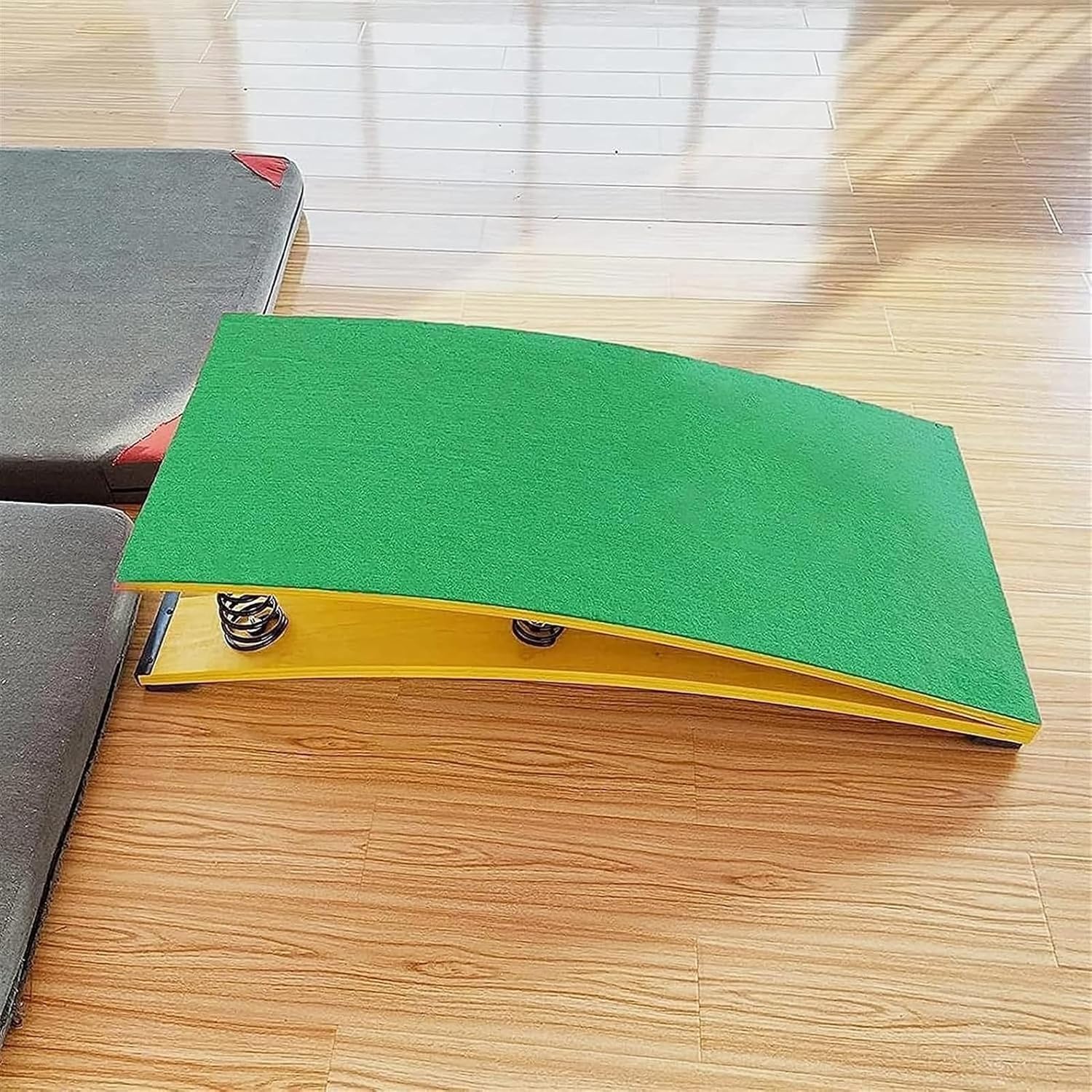 La piastra di supporto è realizzata in legno, che ha un'eccellente capacità di carico e una lunga durata. La piastra in acciaio inossidabile è fissa, rendendo il trampolino più stabile. L'uso di molle spesse ad alta tenacità ha un'elasticità e una resilienza estremamente forti, è sicuro e durevole, facile da pulire e non arrugginisce Utilizzando i trampolini per esercitarsi nell'atterraggio e nello sbarco e migliorare le proprie abilità, i cunei rotanti sono sicuri e comodi per gli eventi di tumbler consumption, la ginnastica, lo stretching, l'arte sportiva e l'allenamento yoga. La parte superiore è realizzata in feltro di alta qualità, con un feltro ispessito in stile tappeto, che è comodo e antiscivolo, con un bell'aspetto e un design aerodinamico, che conferisce un forte senso di design e presenta una bella curva Il design ergonomico del trampolino da ginnastica a molle pesanti garantisce l'assenza di incidenti durante l'uso. Il trampolino da ginnastica ha un'elevata elasticità e non danneggia i piedi, riducendo notevolmente l'affaticamento dell'atleta.