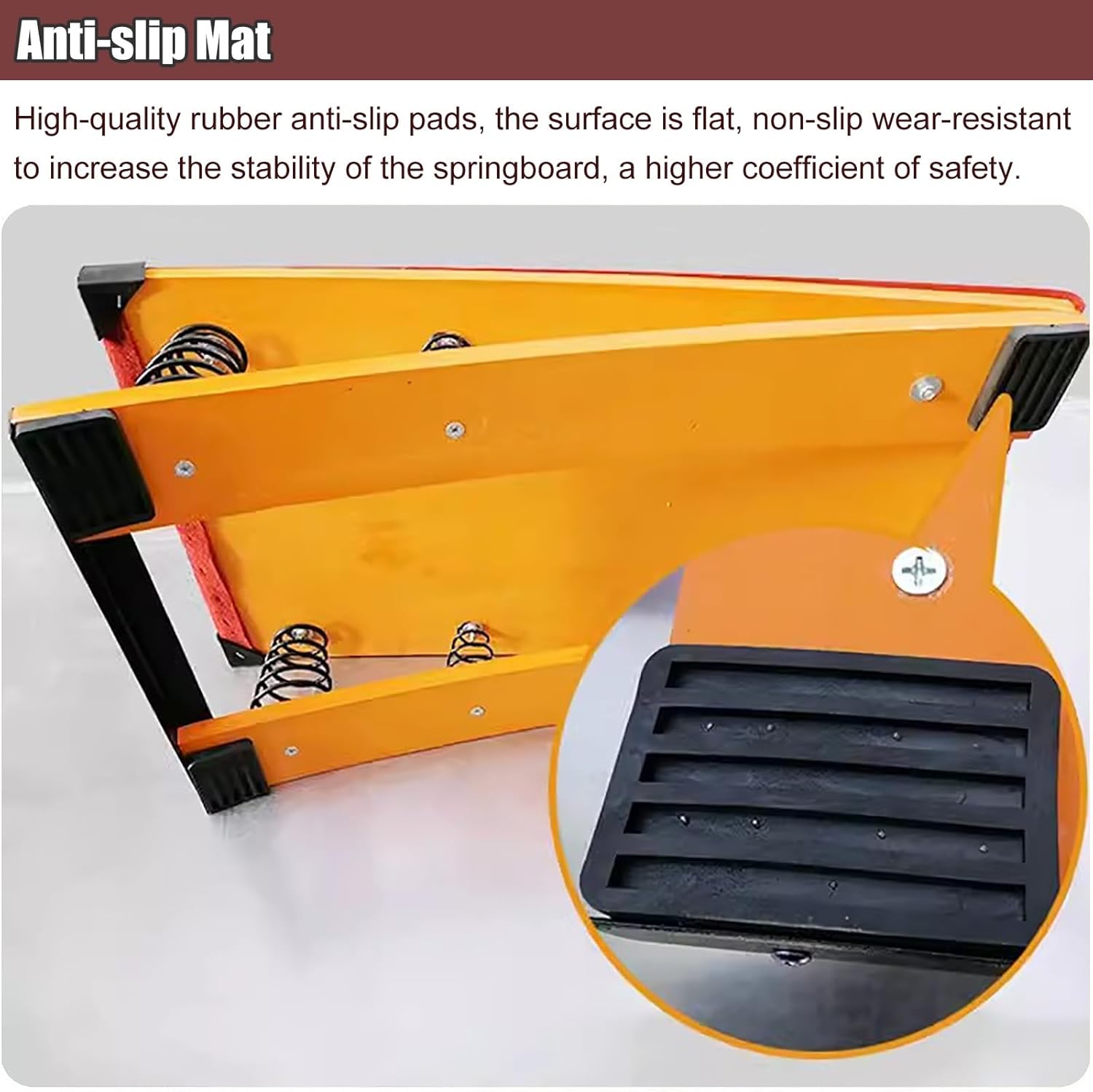 legno stabile: i nostri trampolini sono realizzati con assi di legno duro con una forte capacità portante, senza deformazioni, lisce e senza sbavature, che sono state ripetutamente testate senza danni o rotture. Molle in acciaio altamente elastiche: le molle ispessite ad alta tenacità offrono elasticità e resilienza. Sicure, stabili e non si deformano. Risparmiano energia e permettono ai ginnasti di saltare più in alto. Tappeto superiore antiscivolo e confortevole: la parte superiore del pannello è rivestita in feltro antiscivolo, che protegge la sicurezza dei piedi e offre una presa ottimale. La superficie comoda non arreca alcun danno ai piedi. Pannello primaverile per adulti/ragazzi: perfetto per programmi di volteggio per consumatori, ginnastica, stretching, body art e allenamento yoga in sale giochi, case, palestre, scuole, centri di ginnastica, club sportivi, ecc. Attrezzatura sportiva multiuso: può migliorare la tecnica di guida, allenare lo sbarco e l'atterraggio. Può essere utilizzata anche per esercizi di ginnastica artistica, esercizi alla sbarra, salti, stretching, percorsi a ostacoli o allenamento atletico.