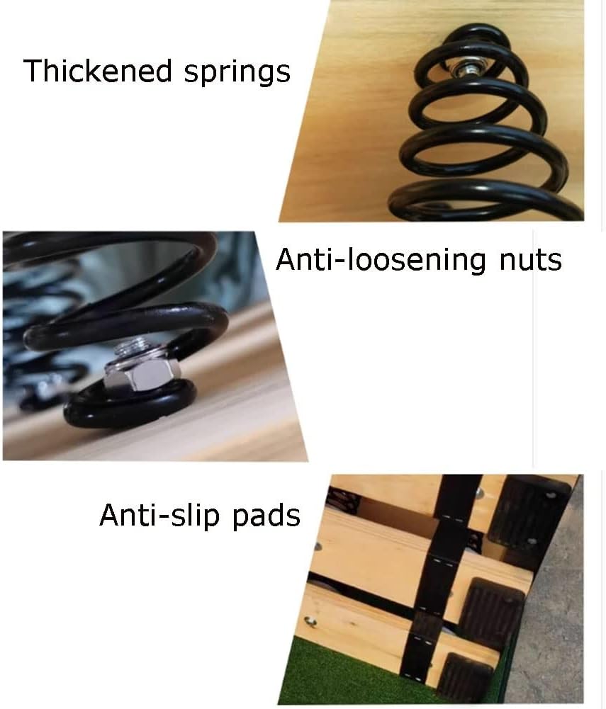 【Tavola in legno duro】: realizzata in legno massello con superficie liscia e senza sbavature; rivestita con un tappeto abrasivo spesso, antiscivolo e confortevole, che aiuta gli atleti a finire la partita e a ridurre l'affaticamento. Capacità di carico 110 kg. 【Elevata elasticità】: Composto da molle metalliche più spesse di 4/9, ha una resistenza e una resilienza eccellenti, è sicuro, durevole e non si deforma. Dopo migliaia di salti in alto, è ancora robusto. 【Cuscinetti antiscivolo in gomma】: realizzati con una superficie antiscivolo, aumentano la stabilità del trampolino, per evitare che il trampolino scivoli o si sposti, in modo che l'atleta possa saltare in sicurezza. 【Dimensioni ergonomiche】: questo trampolino da competizione è adatto sia per bambini che per adulti! Soddisfa i requisiti di istruttori di ginnastica di diversi livelli. Può essere utilizzato in palestra o a casa. 【Ampiamente utilizzato】: Resistente per casa, bar per ginnastica, sala giochi, percorsi a ostacoli, palestra domestica, cantina, ecc.
