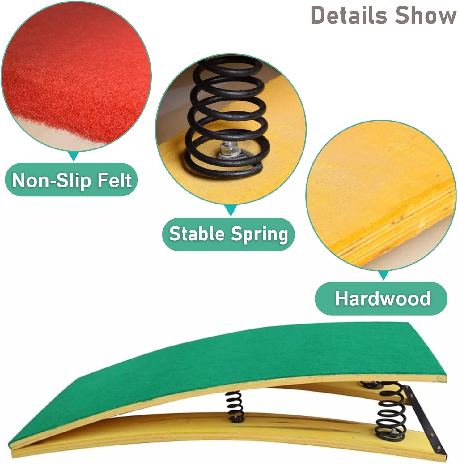 ● Trampolino: progettato per bambini, piccoli principianti e allenatori di ginnastica, questo trampolino è reattivo e riduce notevolmente l'affaticamento dei giocatori. ● Robusto e durevole: realizzato in legno duro spesso, rivestito in feltro. 4 molle metalliche consentono un supporto superiore e un utilizzo ottimale. 80 cm (31,5 pollici) di lunghezza, 50 cm (19,6 pollici) di larghezza, 20 cm (7,8 pollici) di altezza dall'estremità più alta. Capacità di carico: < 65 kg (143 libbre). ● Altezze graduali: trampolino curvo. Grazie alla piattaforma inclinata gradualmente, gli atleti possono posizionare i piedi in una posizione più comoda. I tappetini inclinabili di qualità commerciale sono ideali per le palestre o per l'uso domestico. ● Design con cuscinetti antiscivolo: la parte inferiore è dotata di un design con cuscinetti antiscivolo, che impedisce al trampolino di scivolare e muoversi grazie al terreno liscio, garantendo all'atleta un salto sicuro. ● Occasioni di utilizzo: usalo per esercitarti nel salto in alto o nel volteggio! Il tuo bambino può anche usarlo per fare percorsi a ostacoli, lanciarsi sul divano, come rampa per il suo camion e altro ancora. Ottimo per la sala giochi, la palestra di casa, la scuola, il centro di ginnastica, ecc.