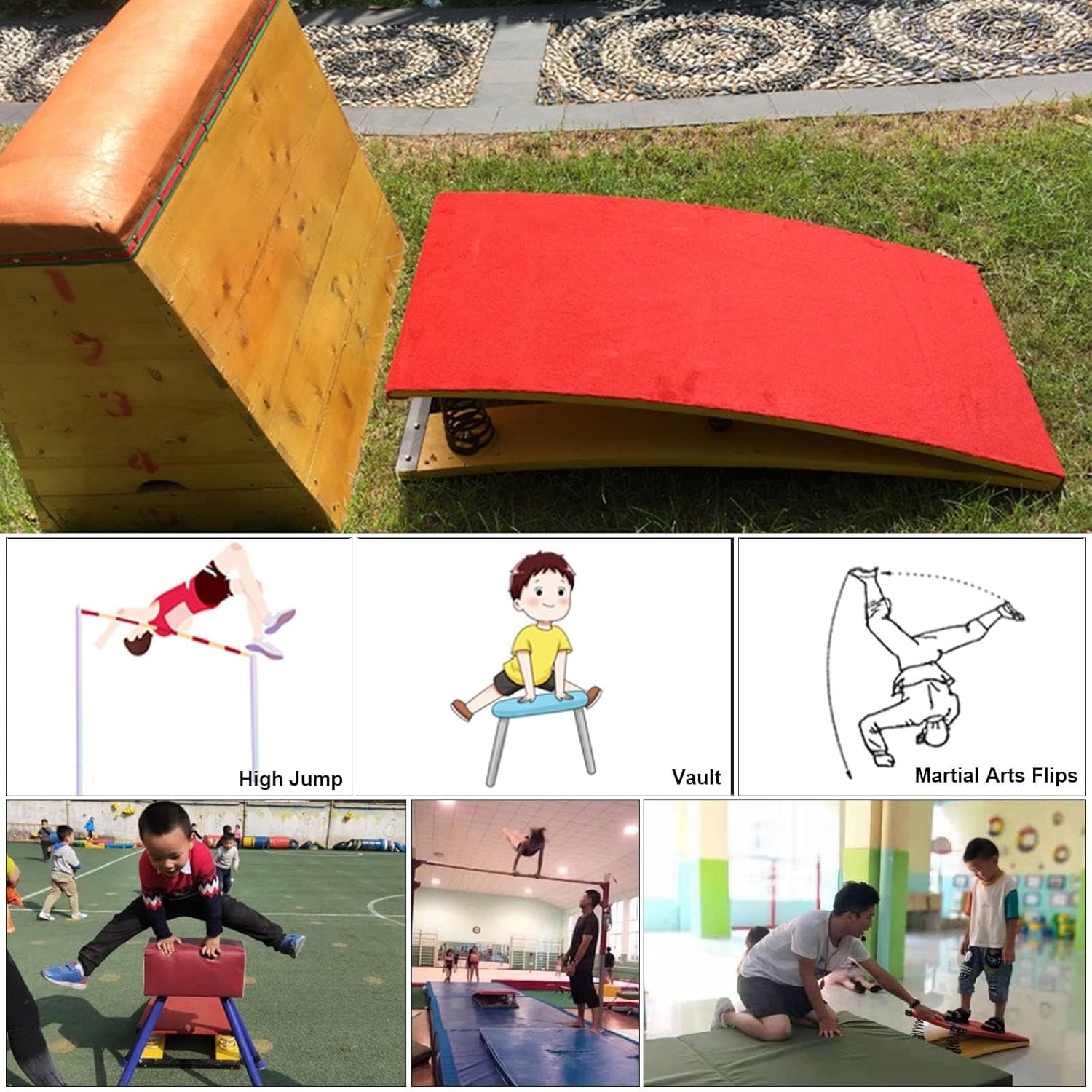 Trampolino: progettato per bambini più grandi, giovani ginnasti e volteggiatori adulti, questo trampolino è reattivo e riduce notevolmente l'affaticamento dei giocatori. Robusto: realizzato in legno duro spesso, rivestito in feltro. 4 molle metalliche consentono un supporto superiore e un utilizzo ottimale. 120 cm (47,2 pollici) di lunghezza, 60 cm (23,6 pollici) di larghezza, 26 cm (10,2 pollici) di altezza dall'estremità più alta. Capacità di carico: < 80 kg (176 libbre). Questo trampolino da ginnastica è progettato ergonomicamente per soddisfare le esigenze degli allenatori di ginnastica di diversi livelli. Progettato appositamente per il volteggio, è estremamente reattivo e riduce notevolmente l'affaticamento degli atleti. Altezze graduali: trampolino curvo. Grazie alla piattaforma gradualmente inclinata, gli atleti possono posizionare i piedi in una posizione più comoda.