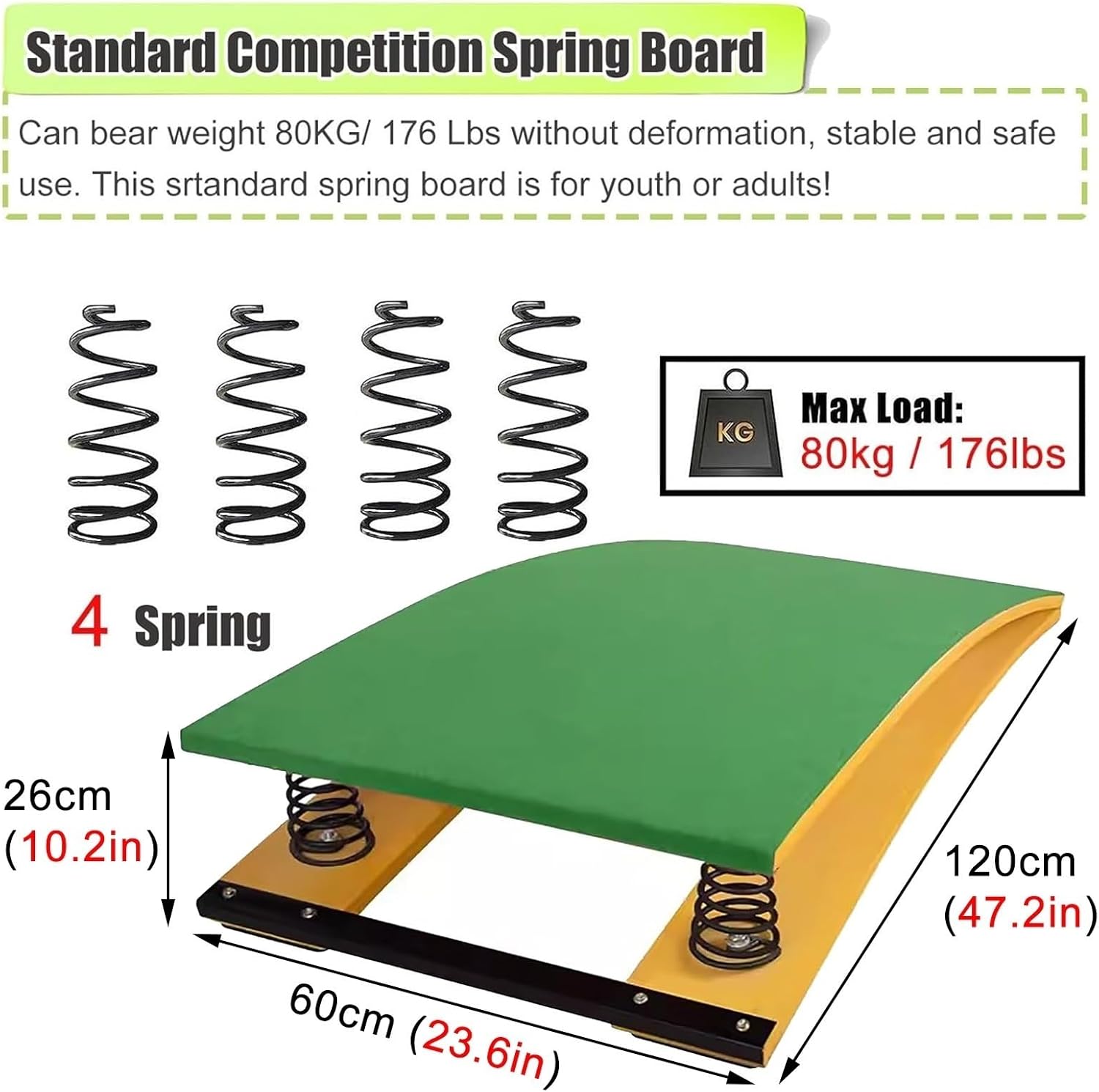 legno stabile: i nostri trampolini sono realizzati con assi di legno duro con una forte capacità portante, senza deformazioni, lisce e senza sbavature, che sono state ripetutamente testate senza danni o rotture. Molle in acciaio altamente elastiche: le molle ispessite ad alta tenacità offrono elasticità e resilienza. Sicure, stabili e non si deformano. Risparmiano energia e permettono ai ginnasti di saltare più in alto. Tappeto superiore antiscivolo e confortevole: la parte superiore del pannello è rivestita in feltro antiscivolo, che protegge la sicurezza dei piedi e offre una presa ottimale. La superficie comoda non arreca alcun danno ai piedi. Pannello primaverile per adulti/ragazzi: perfetto per programmi di volteggio per consumatori, ginnastica, stretching, body art e allenamento yoga in sale giochi, case, palestre, scuole, centri di ginnastica, club sportivi, ecc. Attrezzatura sportiva multiuso: può migliorare la tecnica di guida, allenare lo sbarco e l'atterraggio. Può essere utilizzata anche per esercizi di ginnastica artistica, esercizi alla sbarra, salti, stretching, percorsi a ostacoli o allenamento atletico.