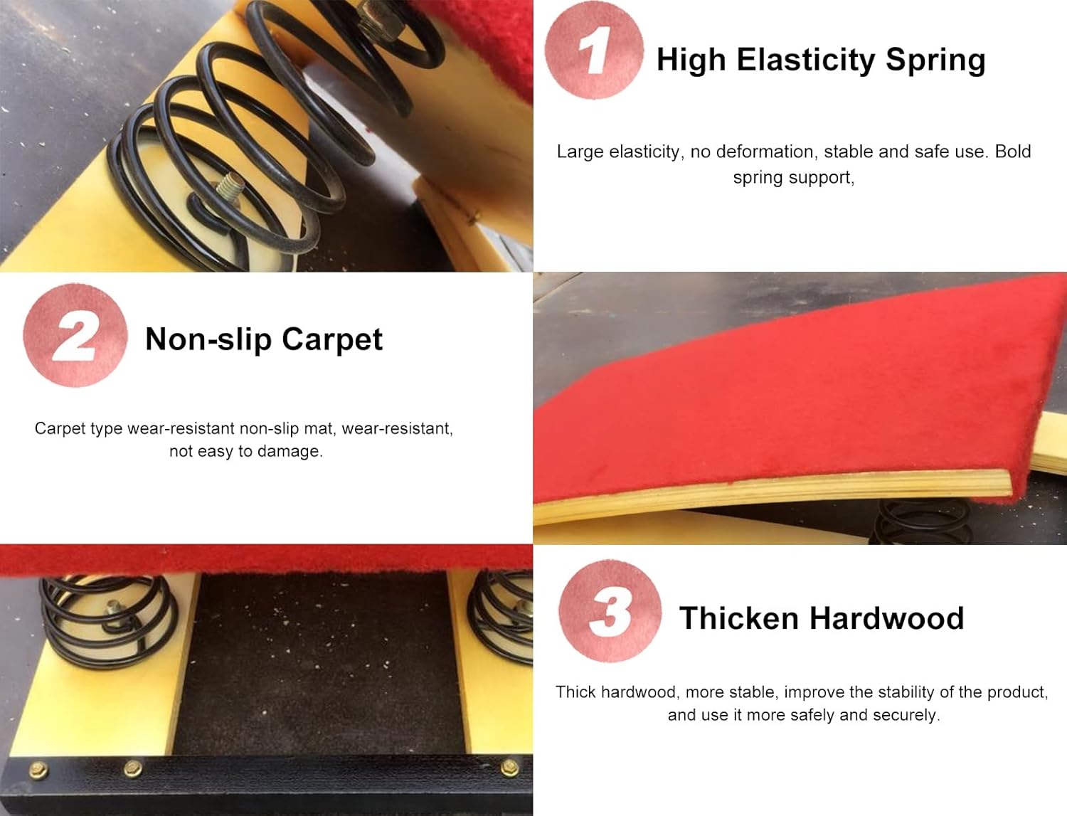 【Materiale sicuro e durevole】Realizzato in legno massello, resistente, impermeabile e resistente all'umidità, non si rompe facilmente. Il tappeto superiore imbottito antiscivolo garantisce presa e comfort durante l'uso. 【Tavola elastica per allenamento junior】Dimensioni: 50 cm x 80 cm/ 19,7 pollici x 31,5 pollici (larghezza x profondità). Portata: 55 kg/ 121 libbre. Per bambini che si allenano a casa. 【Molle in acciaio ispessito】Molla interna in acciaio al manganese ispessita, forte capacità portante, forte elasticità, nessuna deformazione, nessuna piastra in acciaio antiruggine fissata. 【Progettato per gruppi di bambini】Questo trampolino è ottimo come allenatore di salita alle parallele asimmetriche o per esercitarsi negli atterraggi, oppure per lezioni di ginnastica in età prescolare o per migliorare le abilità di volteggio a casa. 【Per molte occasioni ideali】Le specifiche e le proprietà sono progettate secondo gli standard dei bambini, quindi può essere utilizzato nelle classi di ginnastica prescolare, nelle piccole sale giochi, nei percorsi a ostacoli, a scuola, a casa e in altri luoghi.