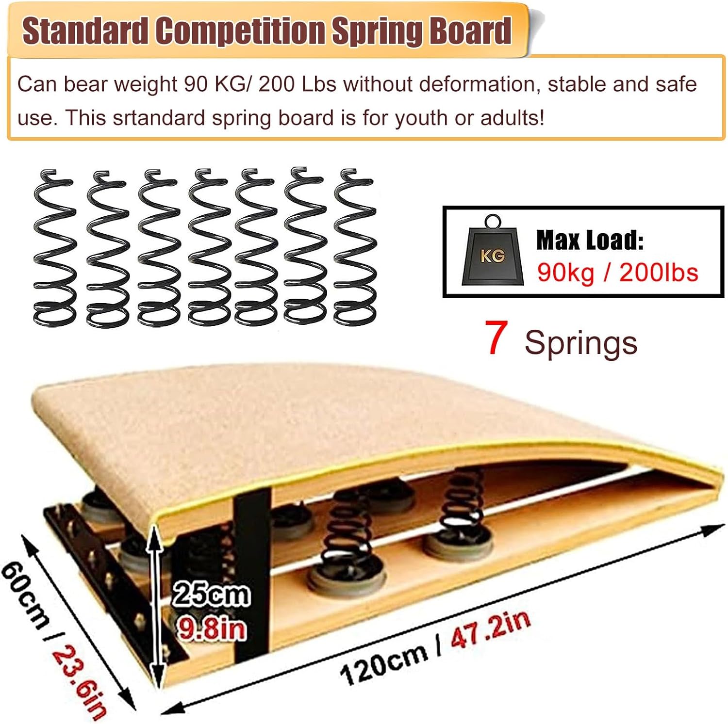 【Legno resistente e stabile】I nostri trampolini sono realizzati con assi di legno duro con una forte capacità portante, senza deformazioni, lisci e senza sbavature, facili da pulire; perfetti in qualsiasi condizione atmosferica, adatti per interni ed esterni. 【Molla ad alta elasticità】: la molla spessa ad alta tenacità ha un'elasticità e un rimbalzo eccellenti, è sicura e durevole, fa risparmiare energia ai ginnasti e fa saltare più in alto. 【Pannello primaverile per adulti/ragazzi】: perfetto per programmi di volteggio per consumatori, ginnastica, stretching, body art e allenamento yoga in sale giochi, case, palestre, scuole, centri di ginnastica, club sportivi, ecc. 【Tappeto superiore antiscivolo e confortevole】: la parte superiore del pannello è dotata di feltro antiscivolo per proteggere i saltatori e fornire una presa sufficiente. La superficie confortevole inoltre non danneggerà i piedi. 【Servizio】I nostri prodotti vengono rigorosamente selezionati prima della spedizione, ci impegniamo per una maggiore soddisfazione. In caso di domande sul nostro prodotto, non esitate a contattare il nostro team di assistenza clienti