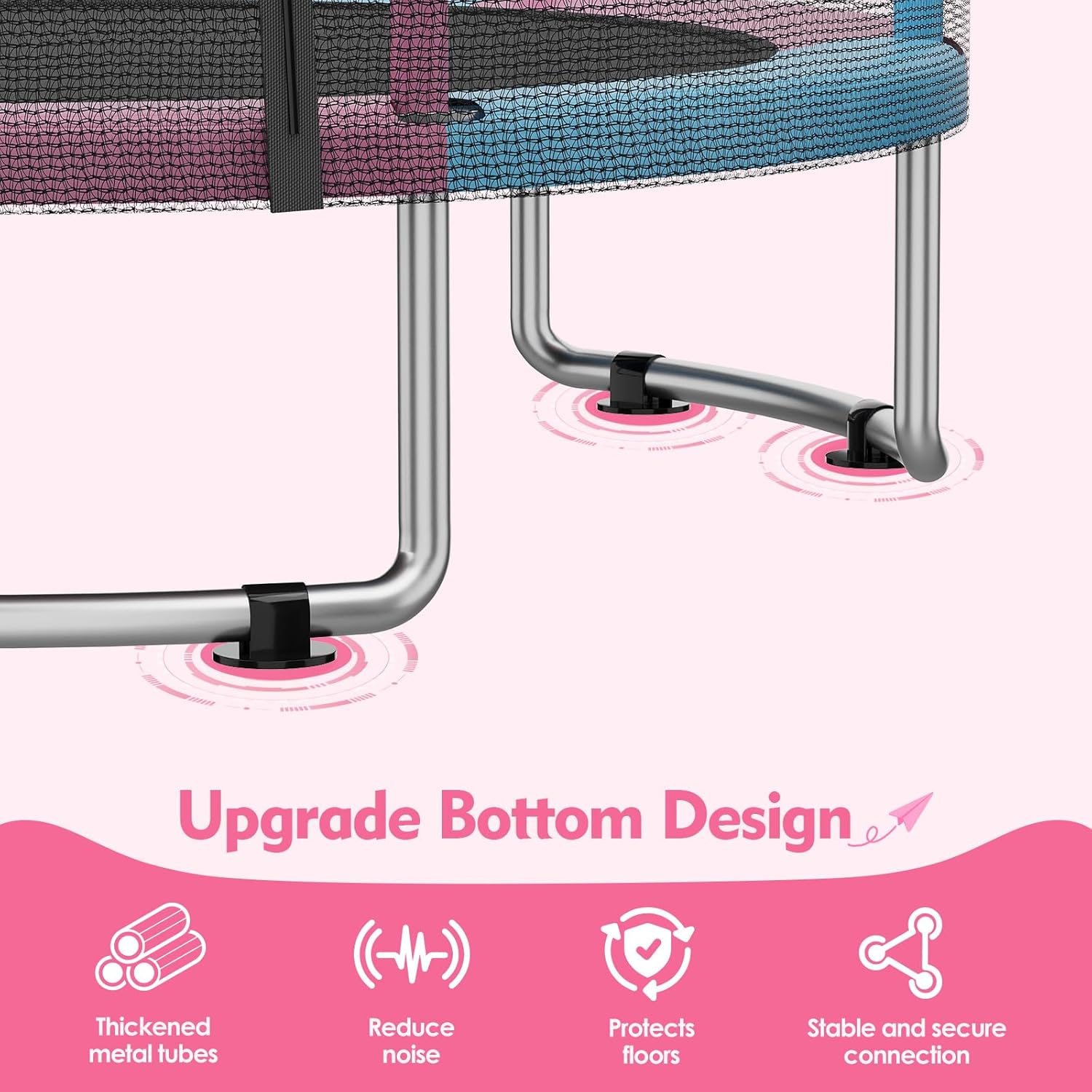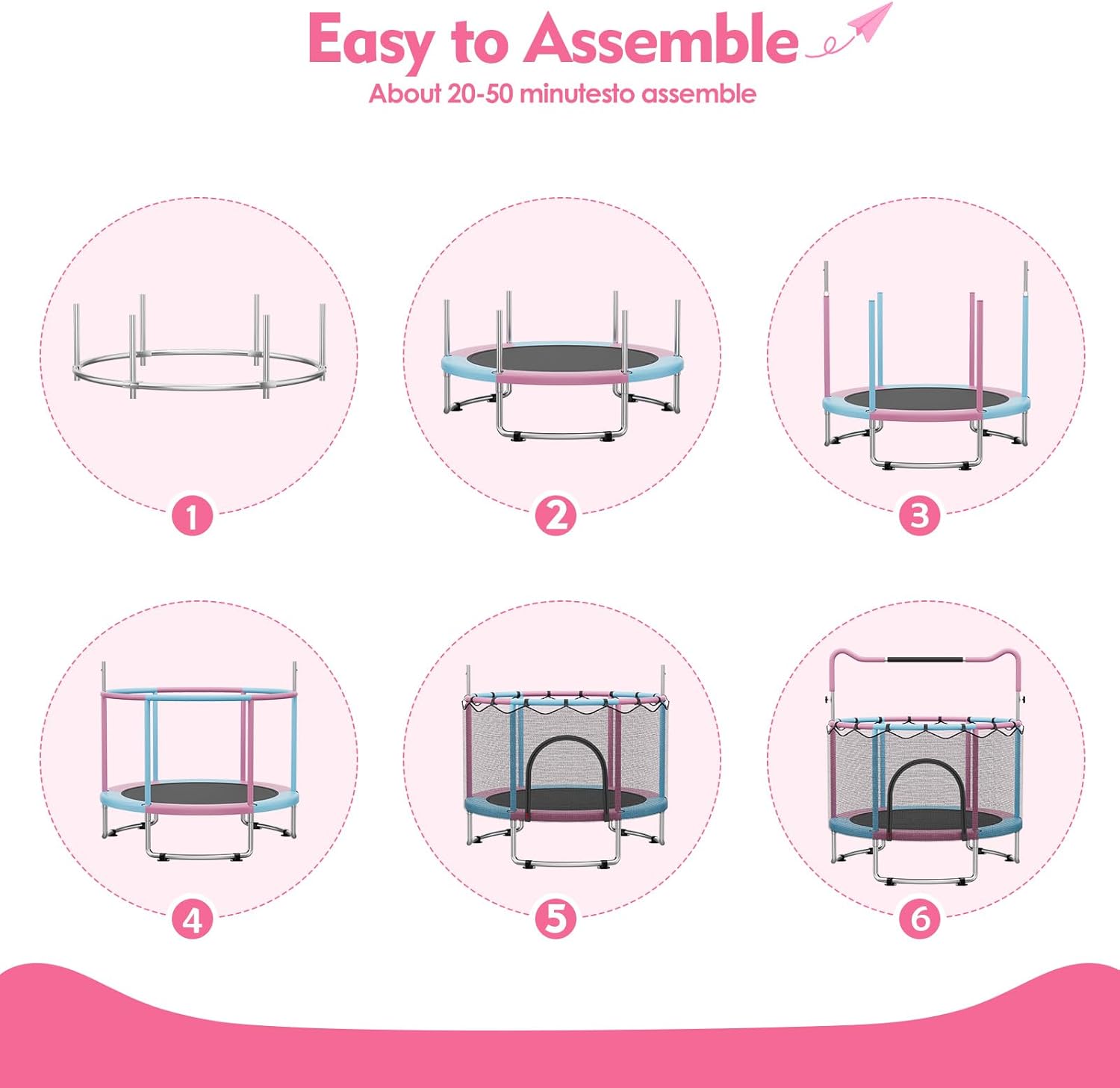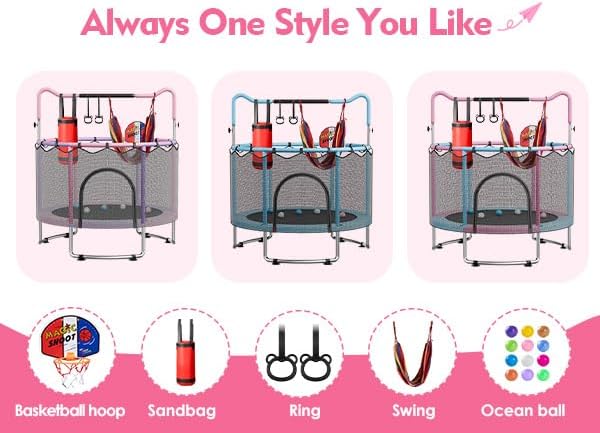 Design versatile: trampolino da interno con rete di sicurezza, altalena, canestro da basket, bersaglio e barra da ginnastica per molteplici attività di gioco Dimensioni compatte: telaio rotondo da 91,4 cm, perfetto per uso interno, con un'altezza di 90,2 cm che lo rende ideale per spazi più piccoli Caratteristiche di sicurezza: include un'imbottitura protettiva in schiuma e una robusta rete di recinzione per mantenere i bambini al sicuro mentre rimbalzano e giocano Capacità di peso: supporta fino a 25 kg, adatto per bambini dai 3 ai 12 anni Struttura resistente: costruito con un robusto telaio in plastica e imbottitura in schiuma per prestazioni durature e sicurezza dei bambini