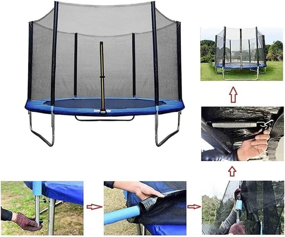 Migliora la sicurezza del tuo trampolino con la nostra rete sostitutiva premium. Realizzata in rete PP di alta qualità, questa rete resistente garantisce la massima protezione e durata. Resistente ai raggi UV per resistere alle intemperie, prevenendo efficacemente l'usura e mantenendo la tua famiglia al sicuro mentre ti godi ore di divertimento. Perfetto per trampolini di diverse dimensioni, migliora la tua esperienza all'aperto. DESIGN UNIVERSALE - Si adatta perfettamente a vari trampolini rotondi da esterno. Disponibile in diverse misure: 1,5 m con 6 pali (1,5 m), 6 pali (1,83 m), 2,44 m con 6 pali (2,44 m), 3,06 m con 6 o 8 pali (3,06 m), 3,66 m con 8 pali. (4,27 centimetri). m) e 4,8 m con 12 poli (4,8 m). Migliora la tua esperienza sul trampolino con questa opzione versatile. Nota: questa confezione contiene solo una rete sostitutiva: senza palo, senza fissaggi. Progettata per la sicurezza del trampolino, la nostra rete resistente offre una protezione migliorata durante i salti. Assicurati la compatibilità controllando il diametro esterno del telaio del tuo trampolino e confermando il numero di pali. Perfetto per mantenere la tua esperienza sul trampolino. [Facile da installare] - La nostra rete sostitutiva per trampolino è facile da collegare. La rete nera del trampolino è fissata saldamente al telaio del trampolino con moschettoni. Quindi può proteggerti perfettamente. Nota: la confezione include solo rete sostitutiva, nessun palo, nessun fissaggio. Prima dell'acquisto, controlla o meno il diametro esterno del telaio del tuo trampolino adatto e conferma anche il numero di pali.