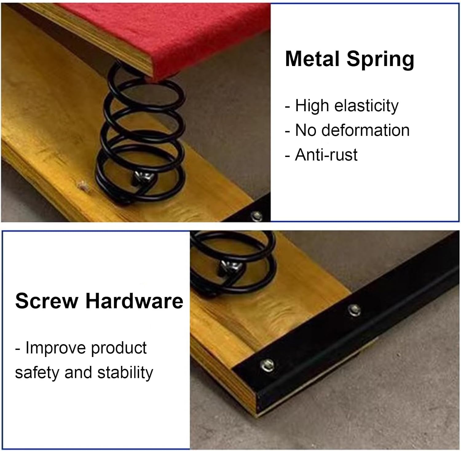 【Trampolino da ginnastica durevole】Il nostro trampolino è realizzato in legno massello, con una forte capacità portante, nessuna deformazione, liscio e senza sbavature, facile da pulire; 【Tavola di supporto per il salto】120 cm (47,2 pollici) di lunghezza, 60 cm (23,6 pollici) di larghezza, 26 cm (10,2 pollici) di altezza dall'estremità più alta. Capacità di carico: 90 kg. 【Molle elastiche in acciaio】Molla ad alta tenacità e spessore elevato, elastica e resiliente. Sicura, stabile e senza distorsioni. Risparmia energia per i ginnasti e salta più in alto. 【Tappeto superiore antiscivolo】Il comodo tappeto superiore antiscivolo consente ai piedi di aderire bene durante il salto e offre anche una superficie confortevole. Non ti farà formicolare i piedi, anche se sei a piedi nudi. 【Ampiamente utilizzato】 Trampolino da ginnastica resistente, perfetto per interni ed esterni, casa, bar per ginnastica, sala giochi, percorsi a ostacoli, palestra di casa, cantina, ecc.