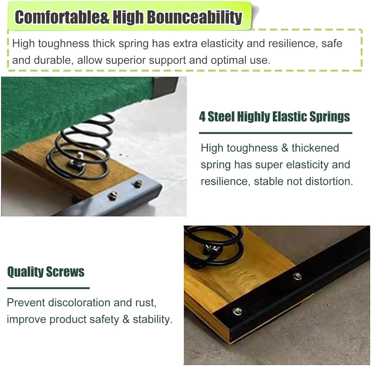 Robusto e: la piastra a molla è realizzata in legno massello e la superficie è realizzata in feltro antiscivolo di alta qualità, antiscivolo, assorbente del sudore, sicuro, stabile, indeformabile e non danneggia i piedi. Molla ad alta tenacità: questo trampolino sportivo è realizzato con una molla ad alta tenacità, che ha una buona elasticità e non si arrugginisce o si deforma facilmente, offrendo una migliore sensazione di rimbalzo. La tavola di legno e la molla sono fissate con una piastra in acciaio ispessito e viti. Il cuscinetto in plastica con scanalature antiscivolo nella parte inferiore del trampolino è sicuro e non si muove. Tappetino antiscivolo in gomma: un tappetino antiscivolo scanalato è posizionato sul fondo di questo trampolino da ginnastica per aumentare la resistenza al contatto e prevenire lo scivolamento. Può essere utilizzato con sicurezza. I quattro angoli della pedana sono inoltre protetti da gomma per evitare collisioni. USI MULTIPLI: Questo eccellente trampolino può essere utilizzato non solo per arti sportive, bilanciere, esercizi di capriole, stretching, allenamento a ostacoli, allenamento di atletica leggera, ma può anche migliorare la forma del corpo, rafforzare i muscoli e migliorare la coordinazione del corpo. Ampia gamma di applicazioni: adatto per trampolini da ginnastica per impieghi gravosi in casa, palestre, campi di allenamento professionali, palestre, scuole, ecc. Che tu sia un atleta professionista, un appassionato di fitness o un allenatore di allenamento fisico per bambini, salto in alto, salto in lungo, puoi scegliere.