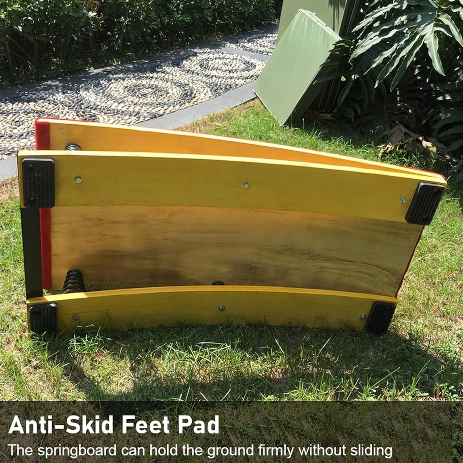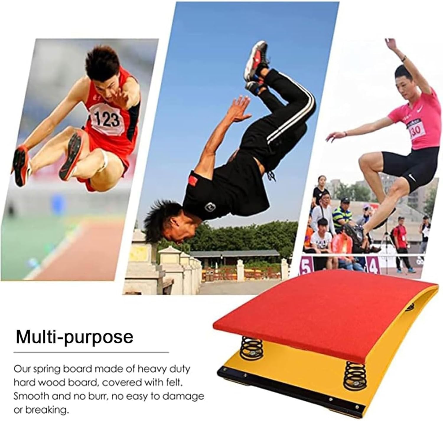 Robusto e: la piastra a molla è realizzata in legno massello e la superficie è realizzata in feltro antiscivolo di alta qualità, antiscivolo, assorbente del sudore, sicuro, stabile, indeformabile e non danneggia i piedi. Molla ad alta tenacità: questo trampolino sportivo è realizzato con una molla ad alta tenacità, che ha una buona elasticità e non si arrugginisce o si deforma facilmente, offrendo una migliore sensazione di rimbalzo. La tavola di legno e la molla sono fissate con una piastra in acciaio ispessito e viti. Il cuscinetto in plastica con scanalature antiscivolo nella parte inferiore del trampolino è sicuro e non si muove. Tappetino antiscivolo in gomma: un tappetino antiscivolo scanalato è posizionato sul fondo di questo trampolino da ginnastica per aumentare la resistenza al contatto e prevenire lo scivolamento. Può essere utilizzato con sicurezza. I quattro angoli della pedana sono inoltre protetti da gomma per evitare collisioni. USI MULTIPLI: Questo eccellente trampolino può essere utilizzato non solo per arti sportive, bilanciere, esercizi di capriole, stretching, allenamento a ostacoli, allenamento di atletica leggera, ma può anche migliorare la forma del corpo, rafforzare i muscoli e migliorare la coordinazione del corpo. Ampia gamma di applicazioni: adatto per trampolini da ginnastica per impieghi gravosi in casa, palestre, campi di allenamento professionali, palestre, scuole, ecc. Che tu sia un atleta professionista, un appassionato di fitness o un allenatore di allenamento fisico per bambini, salto in alto, salto in lungo, puoi scegliere.