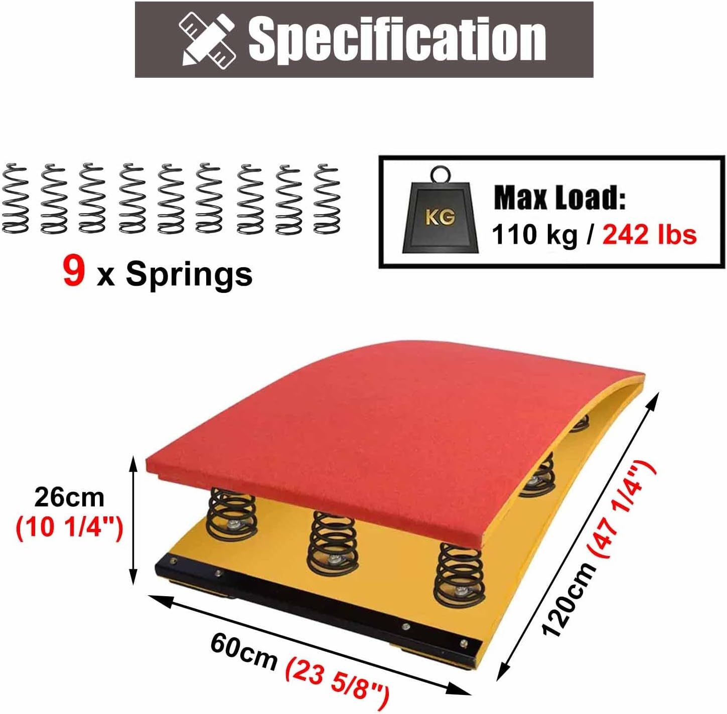 [Legno] Il nostro trampolino è realizzato in legno duro e resistente, liscio e senza sbavature, testato più volte senza subire danni o rotture. Carico: 110 kg/242 libbre. [9 Molla in acciaio altamente elastica] La molla ispessita ad alta tenacità ha una super elasticità e resilienza. Sicura, stabile e senza distorsioni. Risparmia energia per i ginnasti e salta più in alto. [Trampolino per adulti] Migliora la forma del corpo, rafforza i muscoli e migliora la coordinazione. Perfetto per casa, scuola, cantina, sala giochi, palestra, allenamento sportivo, ecc. [Tappeto superiore antiscivolo e confortevole] La parte superiore del pannello è dotata di feltro antiscivolo, che protegge la sicurezza dei saltatori e garantisce una presa adeguata. La superficie comoda non danneggerà i piedi. [Attrezzatura sportiva multiuso] Può migliorare la tecnica del salto, allenare la discesa e l'atterraggio. Può essere utilizzata anche per esercizi di ginnastica artistica, esercizi alla sbarra orizzontale, salti, stretching, percorsi a ostacoli o allenamento atletico.