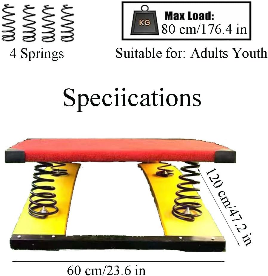 Cuscinetto antiscivolo in gomma di alta qualità, antiscivolo e resistente all'usura, superficie liscia, migliora la stabilità del trampolino, migliora il fattore di sicurezza, seleziona le viti per il fissaggio, impedisce che le viti sbiadiscano e arrugginiscano e migliora la sicurezza e la stabilità del prodotto Selezione di materiali di alta qualità, realizzati con pannelli di legno compressi ad alta resistenza, con una superficie liscia e senza sbavature, sicura e durevole. La superficie è rivestita in feltro di alta qualità, antiscivolo, assorbente, sicuro e facile da pulire. Il trampolino elastico è applicabile all'allenamento, alla competizione e alla valutazione dell'attrezzatura necessaria per le arti marziali, il salto mortale, l'atletica leggera, il salto in lungo da fermo, il salto in lungo nella sabbia, il salto in lungo con corsa e altri eventi di atletica leggera per migliorare la qualità fisica e migliorare l'auto-temperamento. Molla spessa ad alta elasticità, molla spessa ad alta tenacità con migliore elasticità, sicurezza e durata, che fornisce un supporto eccellente e la migliore esperienza e senso d'uso, rendendo il tuo allenamento senza preoccupazioni 【Servizio】I nostri prodotti vengono rigorosamente selezionati prima della spedizione, ci impegniamo per una maggiore soddisfazione. In caso di domande sul nostro prodotto, non esitate a contattare il nostro team di assistenza clienti