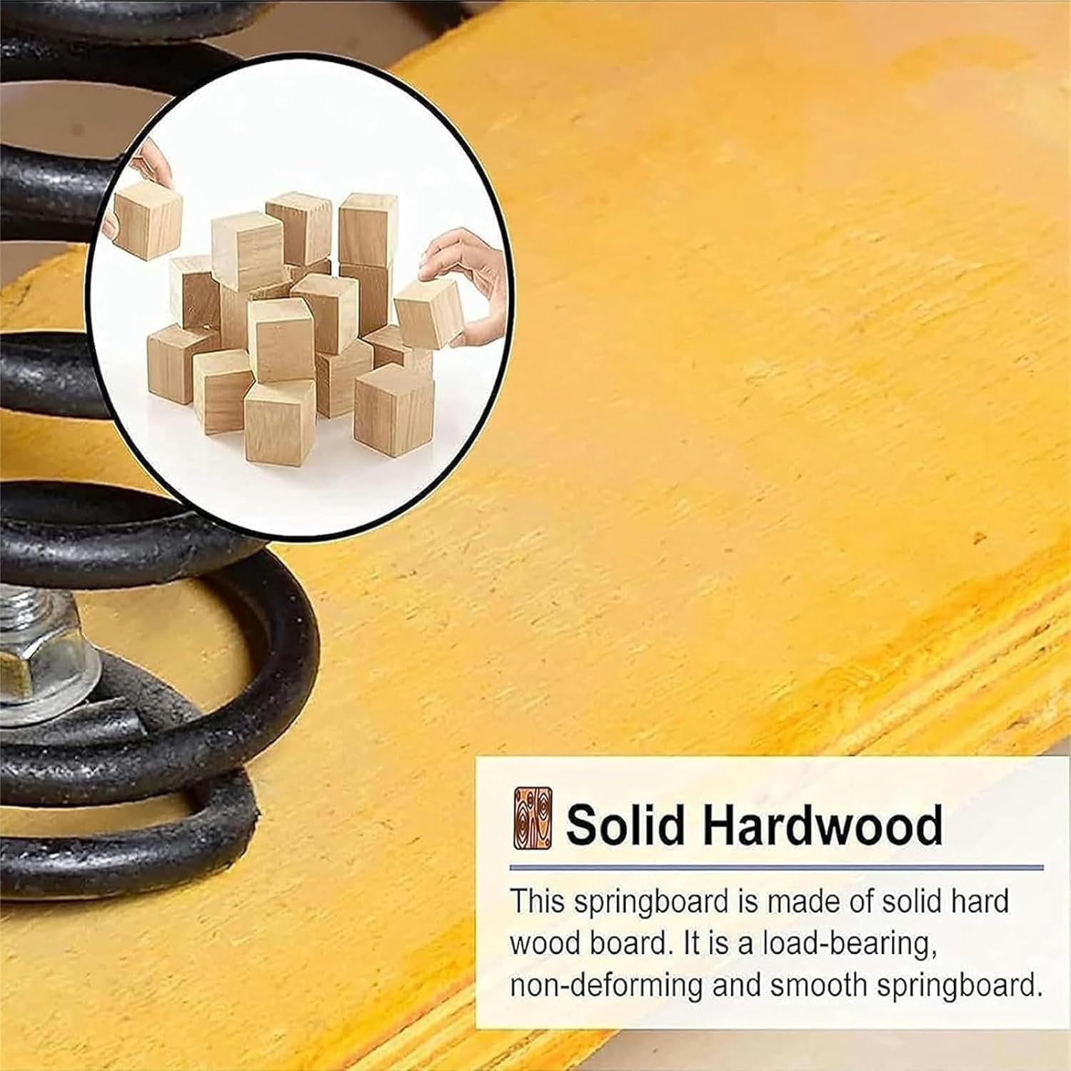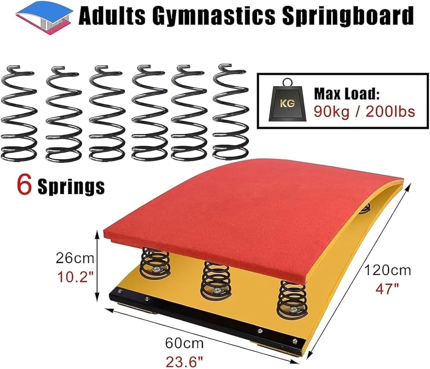 Robusto e durevole: la piastra a molla è realizzata in legno massello e la superficie è realizzata in feltro antiscivolo di alta qualità, antiscivolo, assorbente del sudore, sicuro, stabile, indeformabile e non danneggia i piedi. Molla ad alta tenacità: questo trampolino sportivo è realizzato con una molla ad alta tenacità, che ha una buona elasticità e non si arrugginisce o si deforma facilmente, offrendo una migliore sensazione di rimbalzo. La tavola di legno e la molla sono fissate con una piastra in acciaio ispessito e viti. Il cuscinetto in plastica con scanalature antiscivolo nella parte inferiore del trampolino è sicuro e non si muove. USI MULTIPLI: Questo eccellente trampolino può essere utilizzato non solo per arti sportive, bilanciere, esercizi di capriole, stretching, allenamento a ostacoli, allenamento di atletica leggera, ma può anche migliorare la forma del corpo, rafforzare i muscoli e migliorare la coordinazione del corpo. Tappetino antiscivolo in gomma: un tappetino antiscivolo scanalato è posizionato sul fondo di questo trampolino da ginnastica per aumentare la resistenza al contatto e prevenire lo scivolamento. Può essere utilizzato con sicurezza. I quattro angoli della pedana sono inoltre protetti da gomma per evitare collisioni. Ampia gamma di applicazioni: adatto per trampolini da ginnastica per impieghi gravosi in casa, palestre, campi di allenamento professionali, palestre, scuole, ecc. Che tu sia un atleta professionista, un appassionato di fitness o un allenatore di allenamento fisico per bambini, salto in alto, salto in lungo, puoi scegliere.