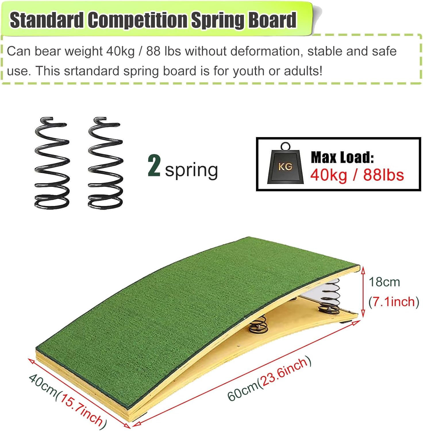 Trampolino Professionale per Palestra, Attrezzatura Sportiva per Allenamento Atletico Indoor e Outdoor, Ginnastica, salti, Legno Duro Curvo (Verde, 2 Molle 40x60x18 cm)