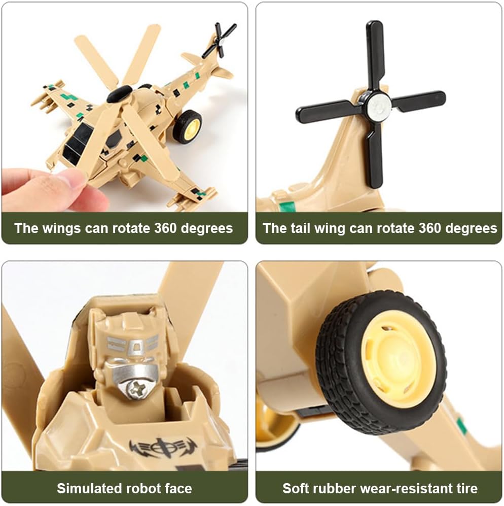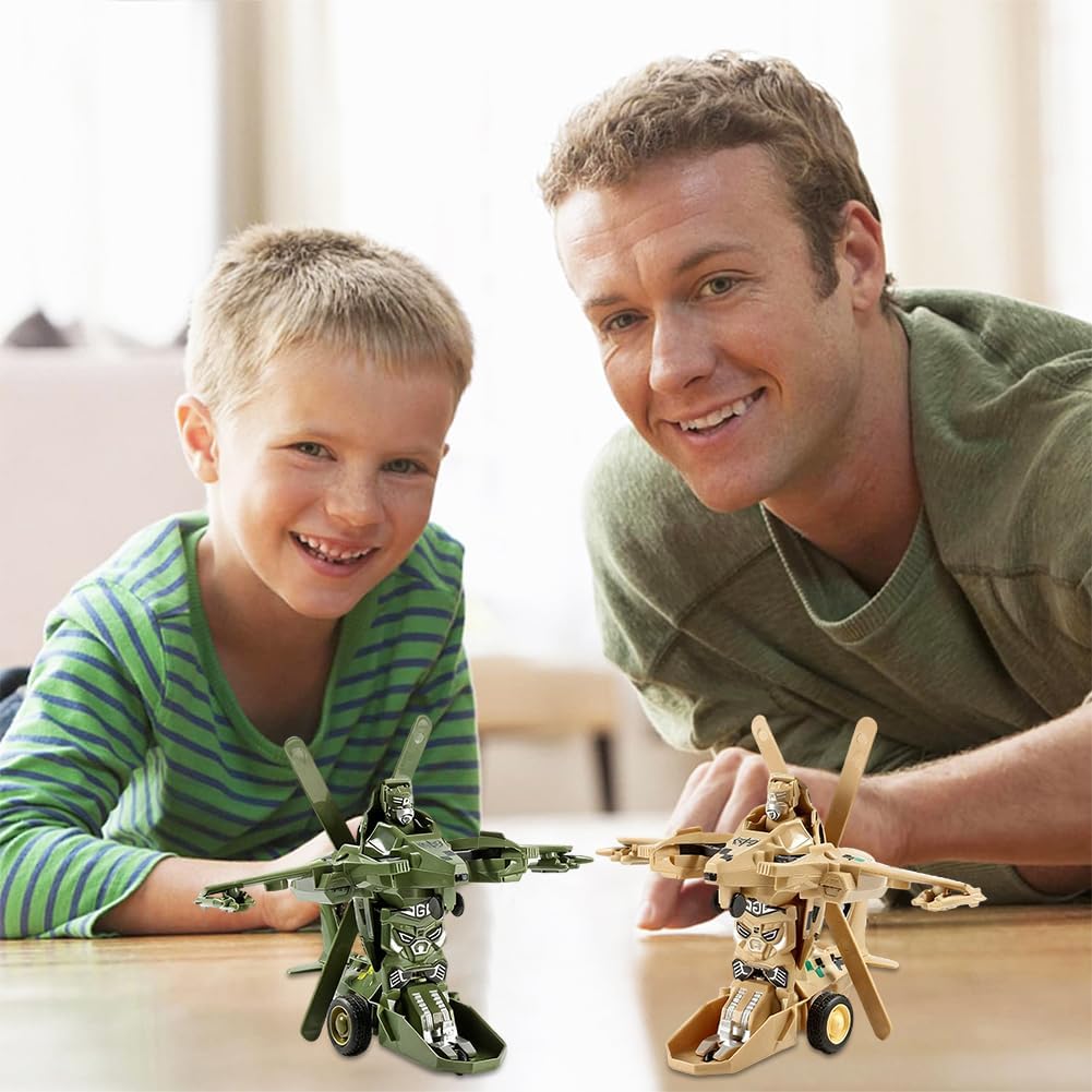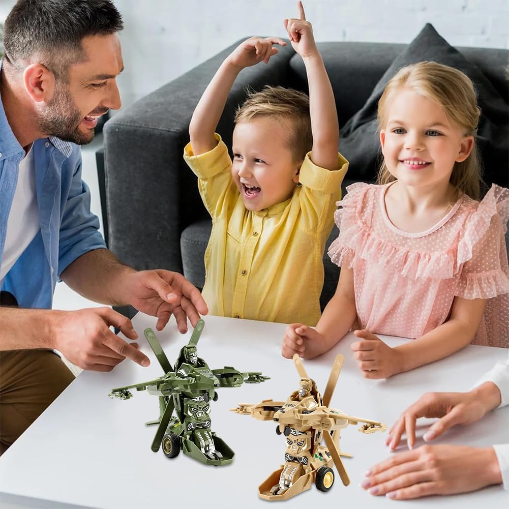【Materiale】Questi velivoli trasformabili sono realizzati in plastica ABS di alta qualità, resistente, leggera e con un'eccezionale resistenza agli urti. Materiali innovativi e un guscio robusto e resistente agli urti migliorano l'esperienza di gioco. 【Due in uno】Passa senza sforzo da una forma all'altra. Tocca il punto di attivazione sulla sua testa per trasformarlo istantaneamente in un robot. Premi ancora una volta per tornare rapidamente dal robot al velivolo. Questa funzione dual-mode affascina i bambini, offrendo ore di divertimento. 【Non richiede batterie】 Un modello elegante dal design ispirato agli aeroplani. Una volta che le ruote iniziano a girare, questo robot si spinge in avanti e indietro sfruttando l'inerzia. 【Regalo perfetto】Combinando aereo e guerriero corazzato in un unico oggetto, questo giocattolo trasformabile è il regalo ideale per qualsiasi bambino. Sceglietelo per compleanni, Natale o lauree: un modo sicuro per rendere felici i più piccoli. 【Alimenta l'immaginazione】I bambini possono liberare la loro creatività, inventando scenari e creando le proprie avventure. La precisione richiesta per la trasformazione migliora la coordinazione occhio-mano e le capacità motorie fini.