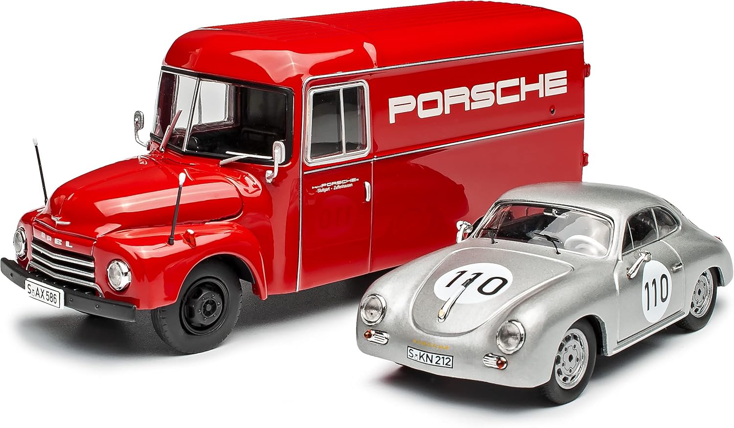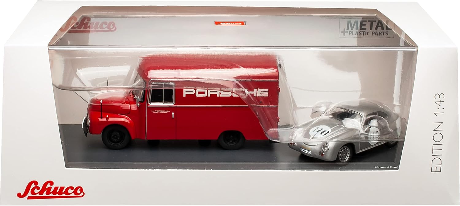 ___la richiesta della targa viene effettuata - AUTOMATICAMENTE entro 1 giorno lavorativo - NON inviare un messaggio in anticipo___ I modelli sono in un'elegante confezione originale Schuco abbinata, con base rimovibile e vetrina. Limitato a 600 pezzi in tutto il mondo. Realizzato in metallo con parti in plastica. Il veicolo è lungo circa 13 cm (furgone) e 10 cm (Porsche).