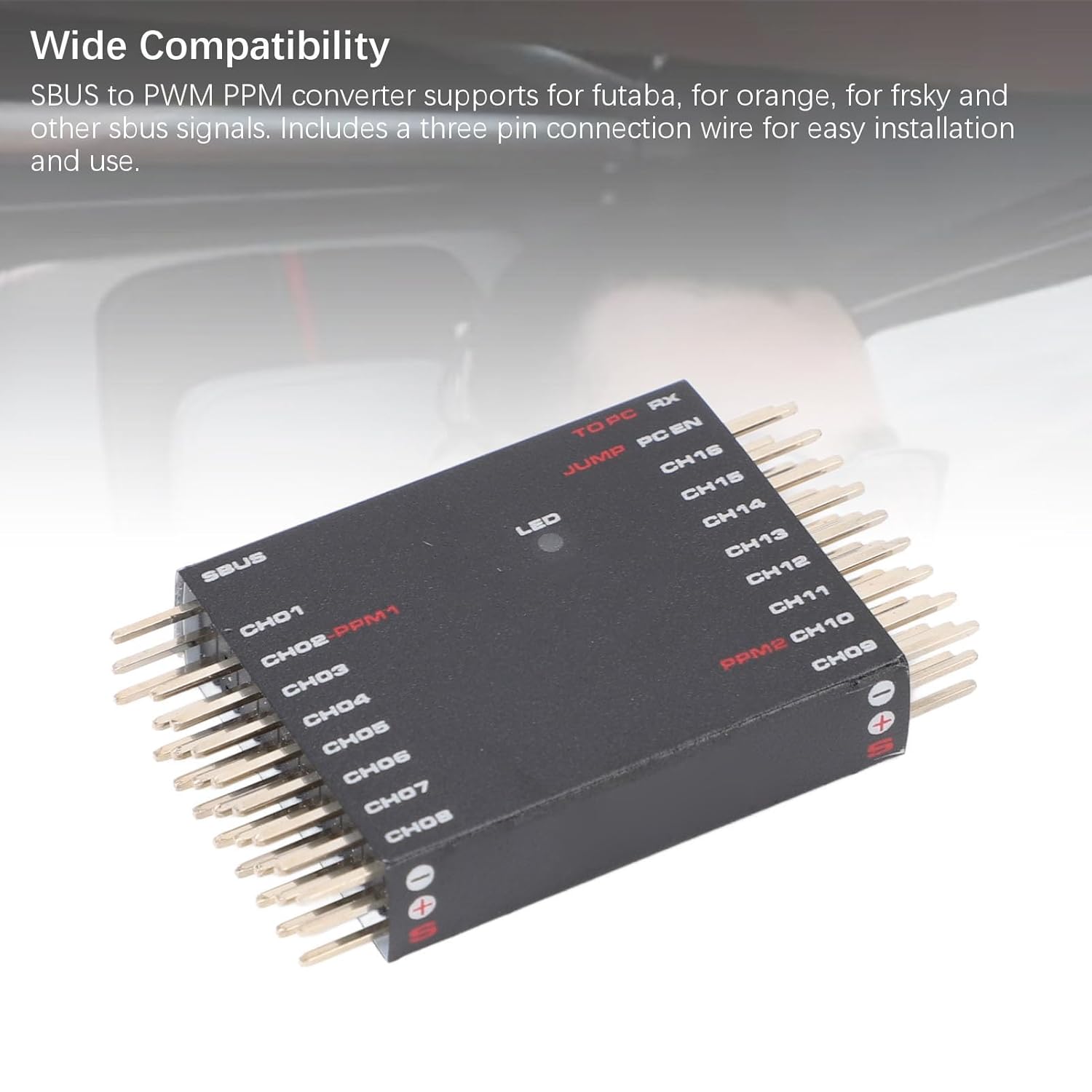 16 : decoder da SBUS a PWM PPM, uscita completa a 16 , supporto impostazioni lato computer, qualsiasi porta emette qualsiasi canale di dati. Compatto e leggero, facile da trasportare. Ordine di uscita personalizzabile: può emettere segnali a 1 o più , personalizzazione 'ordine di uscita di tutti i . Un uso più flessibile, ideale per il fai da te, design professionale, fornisce una conversione affidabile del segnale. Ampia compatibilità: il convertitore da SBUS a PWM PPM supporta futaba, arancione, frsky e altri segnali sbus. Include un cavo di collegamento a tre pin facile installazione e utilizzo. Semplice e conveniente: il ricevitore FRSKY X8R ha 8 interfacce PWM, se desideri utilizzare 16 PWM, puoi usarlo in combinazione con un doppio ricevitore, ma con il decoder da SBUS a PWM, hai bisogno di un ricevitore più il convertitore per realizzare tutte le 16 uscite del canale PWM. Materiale premium: il ricevitore convertitore da SBUS a PWM PPM è realizzato in materiale ABS di alta qualità, ad alta resistenza e non facile da danneggiare. Indossabile per garantire un uso stabile e affidabile per lungo tempo.