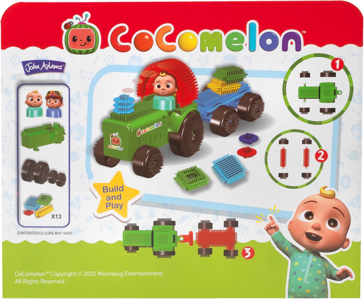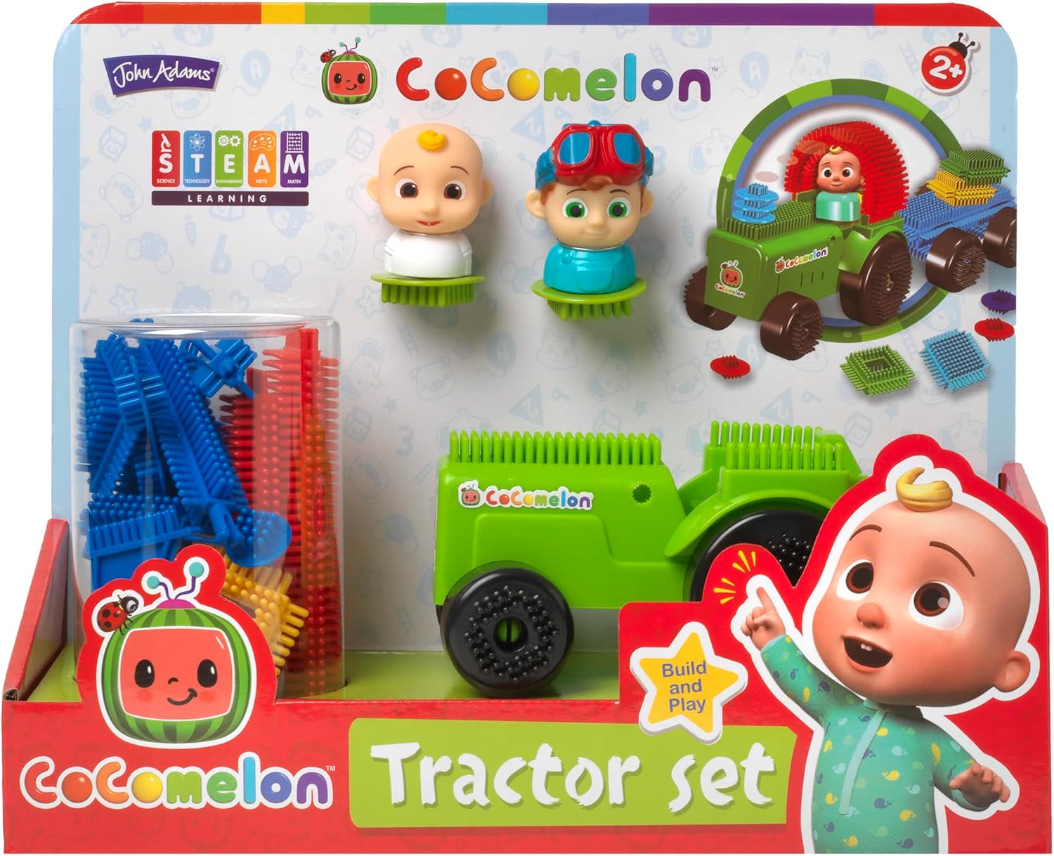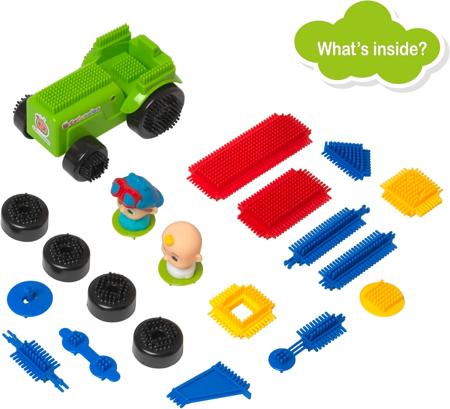 Fun Bricks CoComelon Trattore con ruote mobili Mattoncini stabili perfetti per le mani dei più piccoli. Aiuta i più piccoli a sviluppare la coordinazione occhio-mano. Parte di Learning Minds Steam I colori e i contenuti possono variare.
