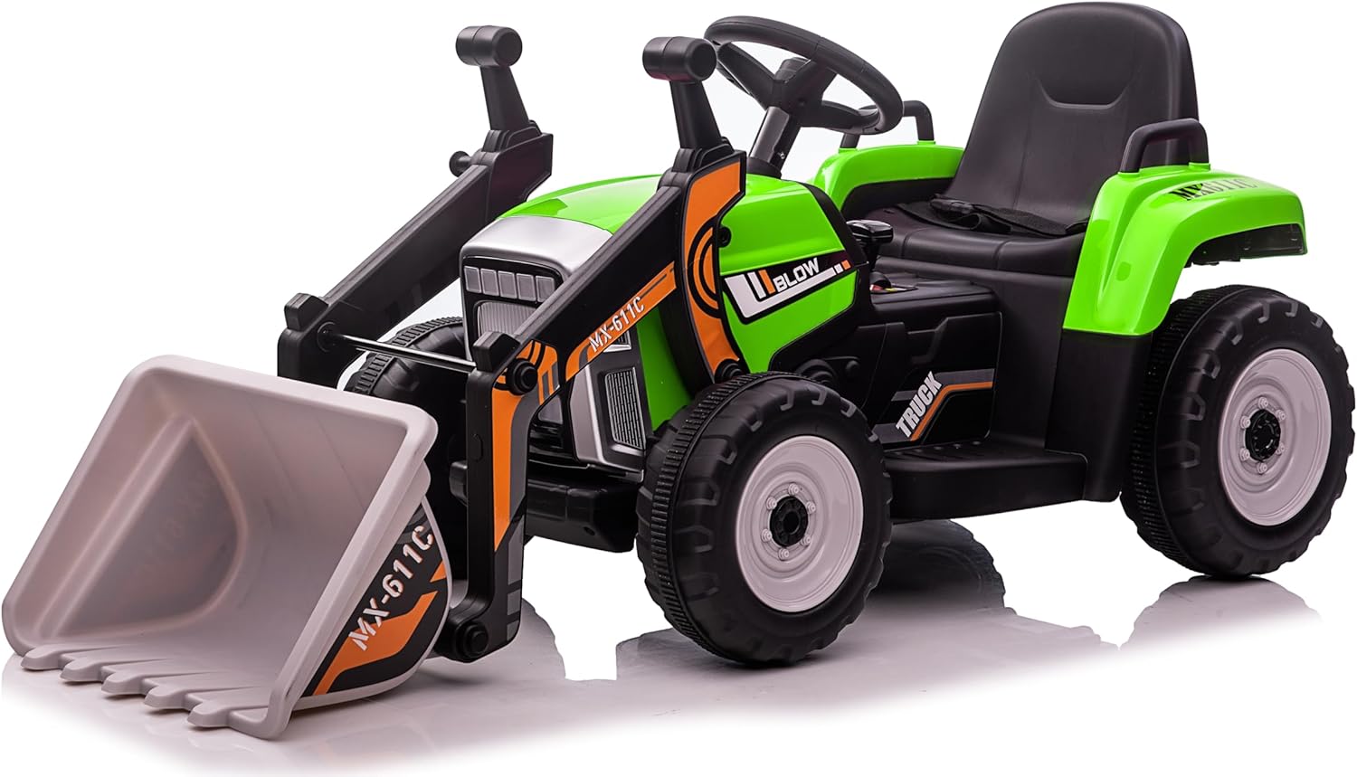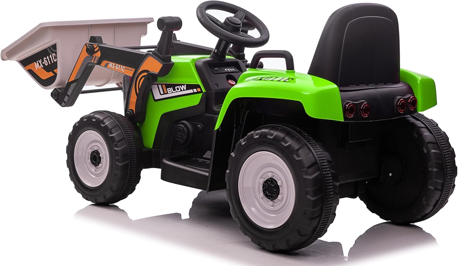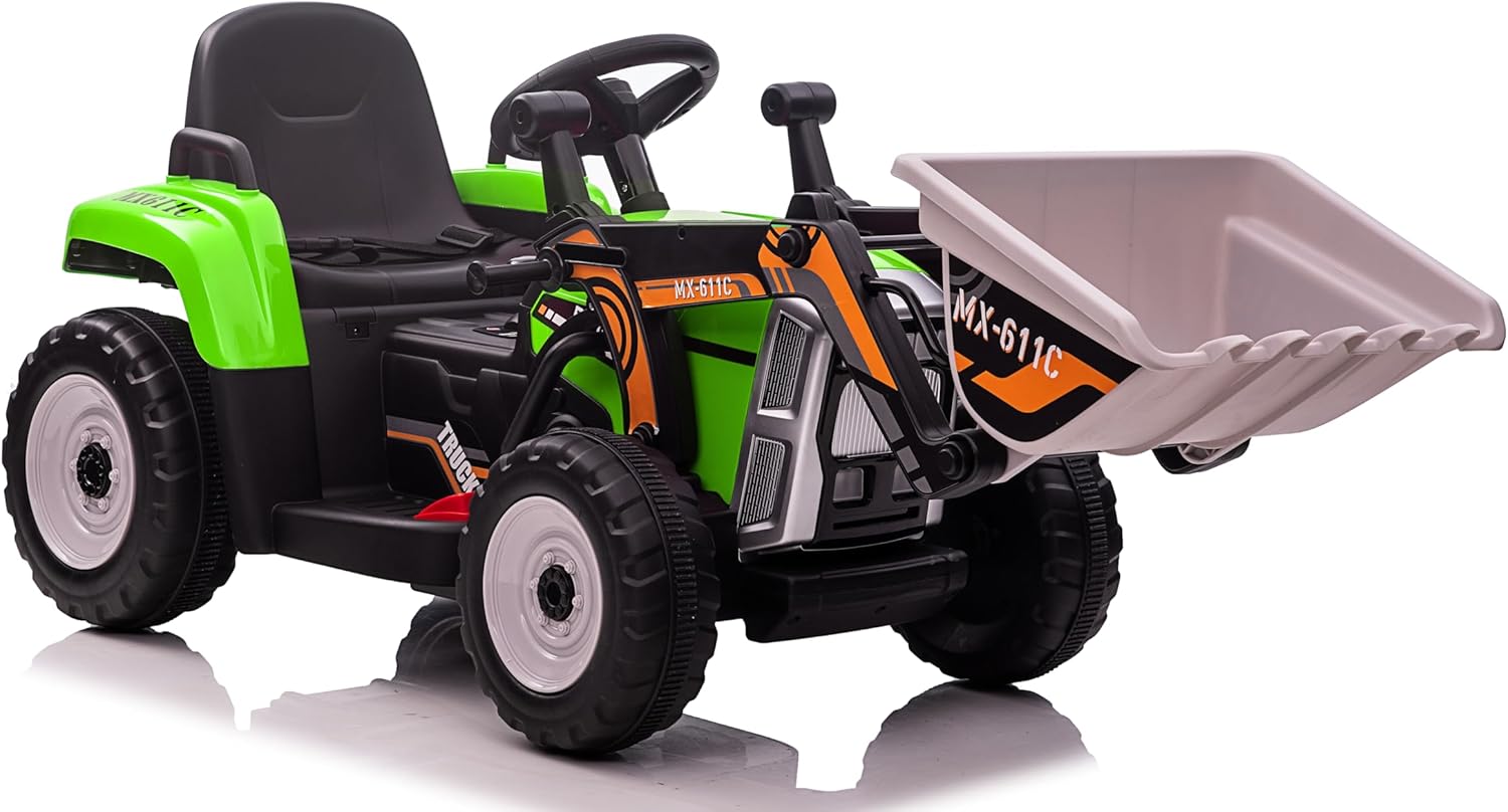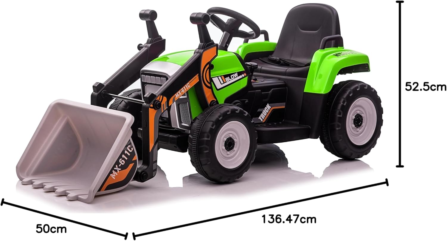 🚜 Divertimento garantito con benna e rimorchio rimovibili – Ideale per trasportare giocattoli, erba o paglia, come un vero piccolo agricoltore 🎮 Controllo totale con telecomando 2.4GHz – 3 velocità regolabili in modalità R/C e funzione di guida manuale con cambio a 2 marce + retromarcia 🔋 Due motori potenti e batteria ricaricabile inclusa – 2 motori da 12V 35W e batteria da 12V 7AH per lunghe ore di gioco senza interruzioni 💡 Effetti luminosi LED – Le luci brillano al buio per un’esperienza ancora più realistica e coinvolgente 🧒 Massima sicurezza e comfort – Sedile spazioso con cintura di sicurezza e tecnologia soft start per partenze e frenate graduali 🛞 Ruote resistenti per ogni terreno – Adatte a legno, asfalto, pavimentazioni in mattoni e altri tipi di superfici ⚙️ Struttura robusta in PP e ferro – Supporta fino a 30 kg, ideale per bambini piccoli e sicura nel tempo