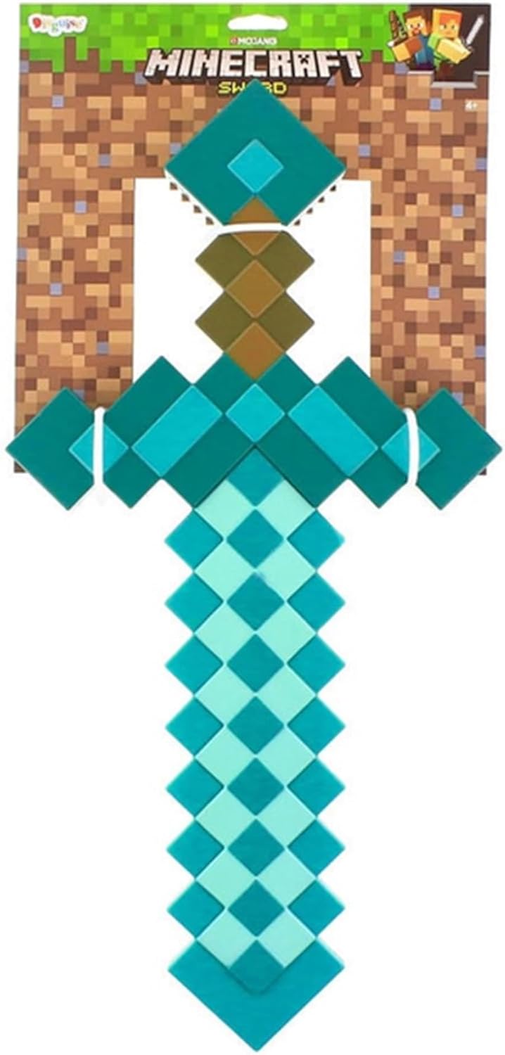 Spada di diamante replica in plastica Minecraft 51 cm Questa replica con licenza ufficiale di una spada di diamante proviene dal videogioco "Minecraft", realizzata in plastica. La spada è di ca. 51 cm di lunghezza e 25 cm di larghezza compreso il manico