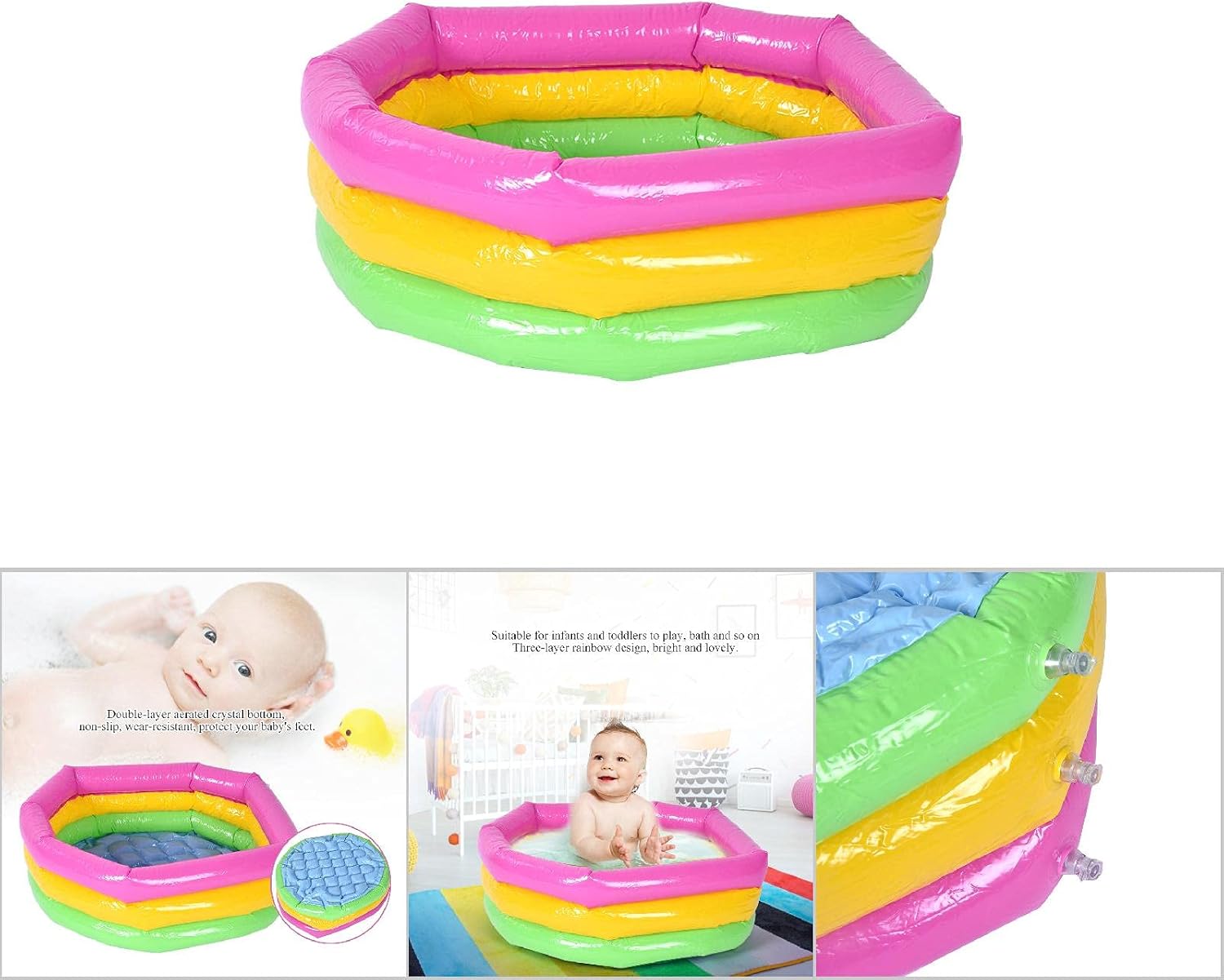 Tavolo da sabbia per giocattoli per giocattoli per spazi arcobaleno a tre strati che pesca una piscina per bambini in piscina per bambini (piscina (piscina ( Il fondo cristallino aerato a doppio livello, non slitta, resistente all'usura, proteggi i piedi del tuo bambino. Design a forma di pallone e tecnologia fusionale senza soluzione di continuità, morbida e . Adotta il blocco dell'aria di sicurezza del livello di separazione della pompa, che è più conveniente e pratico. Adatto a neonati e bambini piccoli da giocare, bagno e così via.