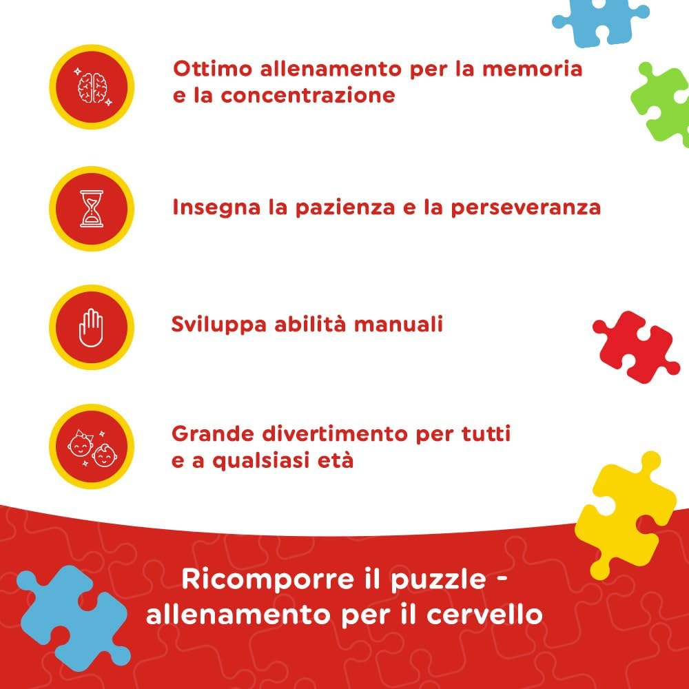 Il puzzle è composto da 100 pezzi che, una volta assemblati, formeranno un'immagine di 410 x 275 mm raffigurante i personaggi della fiaba Fireman Sam. I colori vivaci e le forme accattivanti dei puzzle incoraggiano i bambini a giocare, mentre le interessanti illustrazioni attirano la loro attenzione. Comporre i puzzle stimola la curiosità verso il mondo e l'immaginazione, combinando piacevolmente l'apprendimento e il gioco, calma il bambino, esercita la concentrazione, insegna la pazienza e la percettività e rafforza la fiducia in se stesso. I puzzle sono stati adattati alle capacità cognitive e allo sviluppo dei bambini di diverse età. Un regalo perfetto per ogni bambino. Realizzato con materiali naturali sicuri e di alta qualità.
