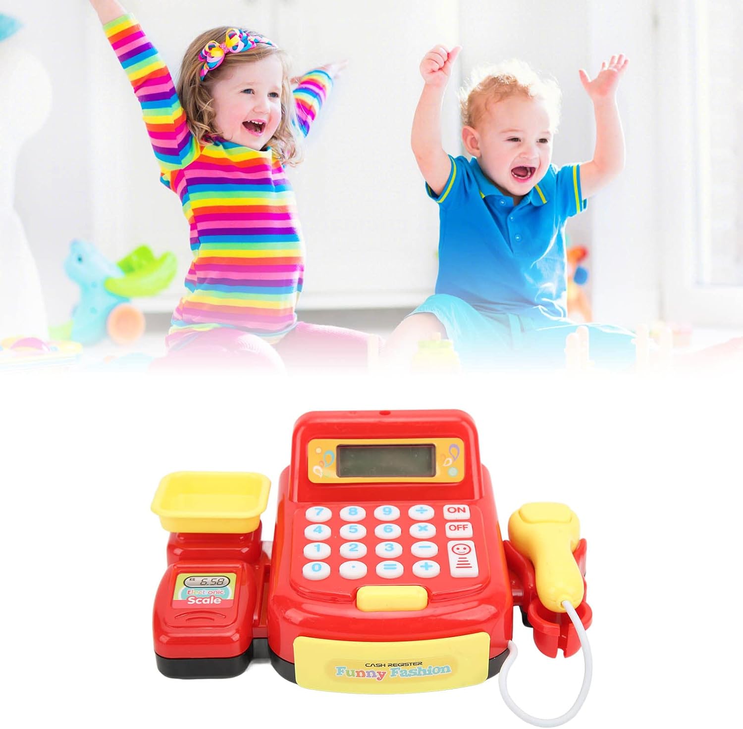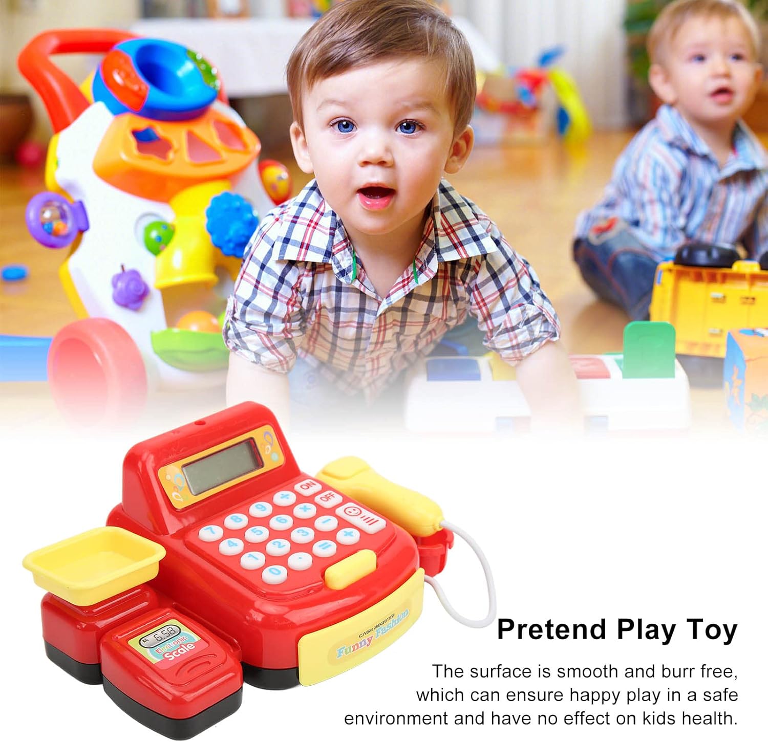 Sicuro per: realizzato in materiale plastico, gomma e metallo di alta qualità, durevole e resistente alle tempeste, non preoccuparti di giocare male. Superficie senza sbavature: la superficie è liscia e priva di sbavature, il che può garantire un gioco felice in un ambiente sicuro e non ha alcun impatto sulla salute dei bambini. Immagina di essere un cassiere: divertiti a giocare con questo registratore di cassa giocattolo da solo o con gli amici, fingi di essere come un cassiere che aiuta le persone ad acquistare generi alimentari o merci e a spenderli con soldi finti. Formazione sulle abilità di calcolo: i registratori di cassa sono tutti dotati di pulsanti e calcolatrici a tema monete di gioco che ti insegnano come aggiungere e sottrarre i numeri di base. Bel regalo di compleanno: i giocattoli per bambini sono adatti ad ogni occasione e festival. Adatto per oltre tre anni.