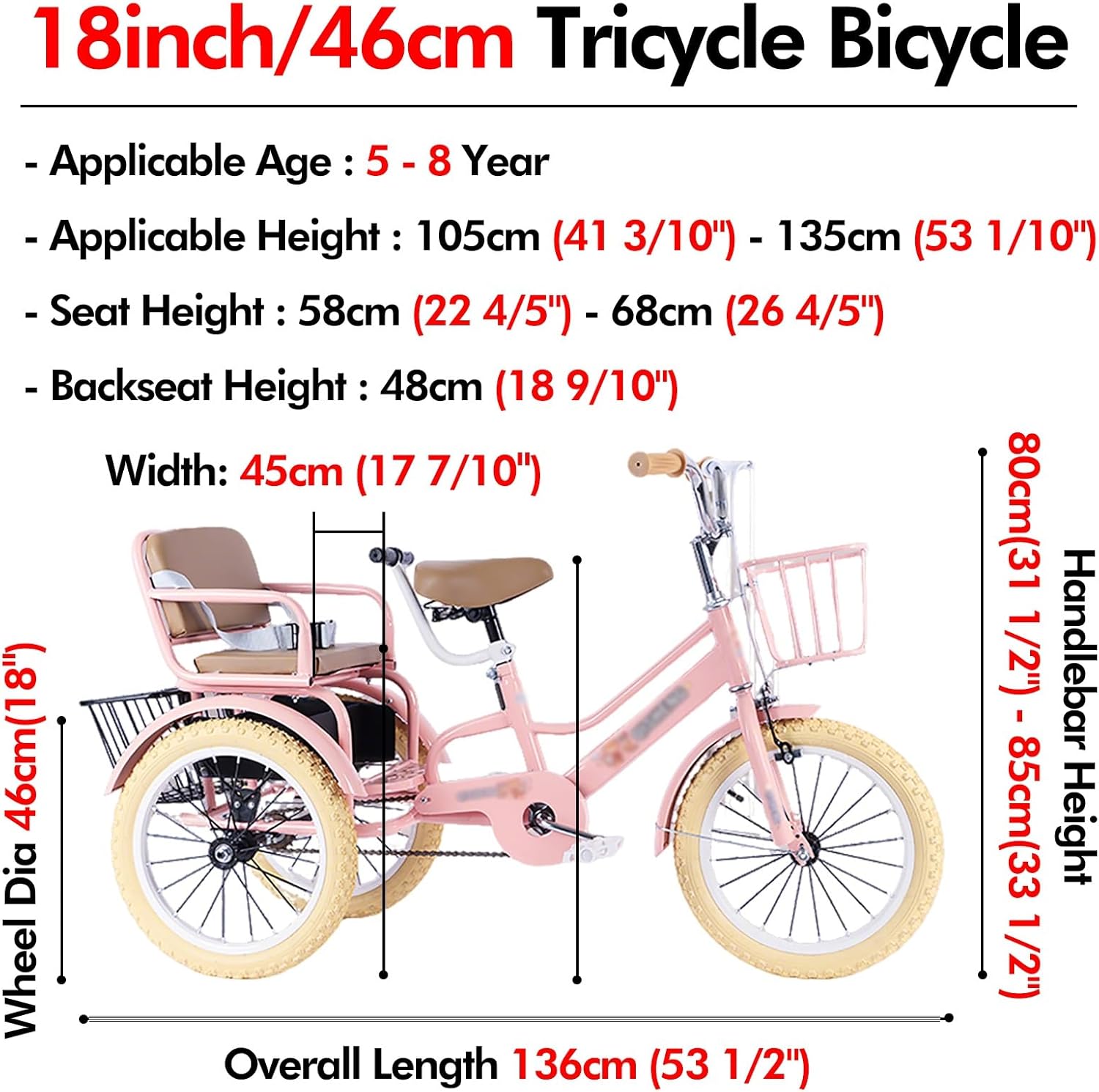 Tandem Bike: sei ancora preoccupato che i tuoi due figli gareggino per la bici a casa? Il nostro triciclo ti aiuterà a risolvere questo problema. Permette a due persone di viaggiare contemporaneamente, la solida struttura del triciclo è ben bilanciata e riduce il rischio di ribaltamento. Triciclo 14 16 18 20 pollici: abbiamo 14 pollici - 3-5 anni / 16 pollici - 4-6 anni / 18 pollici - 5-8 anni / 20 pollici - 6-11 anni tra cui scegliere. In quattro misure per le diverse fasi della vita. Il manubrio del sedile regolabile in altezza garantisce un buon allungamento durante la guida. Telaio in acciaio al carbonio: i nostri tricicli sono realizzati in acciaio al carbonio con una capacità di carico fino a 200 kg/440 libbre, pneumatici antiscivolo più larghi e spessi con ampia superficie di atterraggio, adatti a tutti i tipi di superfici, sedili anteriori e posteriori in morbida schiuma per una guida più confortevole. Regali per l'infanzia: questa bici a due posti è la corsa perfetta per i bambini che vogliono divertirsi andando in bicicletta o giocando a giochi di inseguimento. È un regalo di compleanno ideale per i tuoi bambini. Più che un semplice giocattolo, sarà un prezioso compagno per tutta la loro infanzia. Safety Cruiser Trikes: questa bici è dotata di sistema di freno della ruota anteriore per una frenata rapida e sensibile, prestazioni di frenata stabili per garantire maggiore sicurezza durante la guida, dotata anche di cuscinetti ad alta velocità, rotazione e guida flessibile più facili