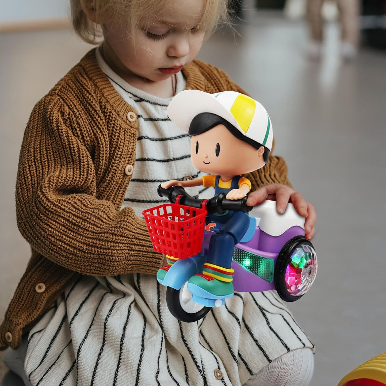 Aspetto Divertente: Mostra linee adatte ai bambini e stile cartone animato , i colori vivaci forte attrazione ludica stimolando il gioco esplorativo e attività ricreative gioiose per bambini Combinazione Display LED-Suono: Musica dinamica con attivazione automatica potenzia il divertimento, grazie agli effetti del display LED innovativo, creando un'esperienza immersiva con il giocattolo auto per bambini di alta qualità. Adattabilità: Ideale per casa e giardino, questo giocattolo auto per bambini unisce corpo leggero e maneggevolezza, adattandosi a vari contesti di gioco con massimo divertimento. Comfort portatile: Funzionamento fluido garantito dalla guida elettrica automatica e immediato a un pulsante, massimo divertimento senza interruzioni per appassionati di giocattoli auto bimbi Sterzata Dinamica: Progettato per curve a 360 abilita azioni acrobatiche stimolando lo sviluppo della coordinazione e affinando le capacità di allenamento 'equilibrio con divertimento interattivo