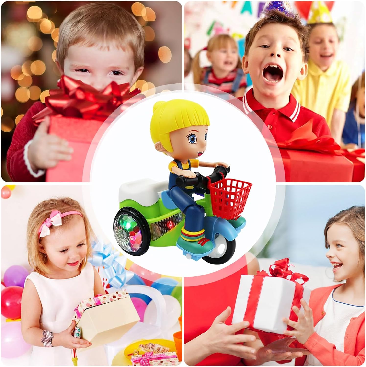 Effetti Interattivi: Musiche vivaci con effetti sensoriali automatici e luci LED brillanti un'esperienza di gioco coinvolgente per il giocattolo auto bambini, stimolando fantasia e divertimento Design Rotante: Meccanismo a 360 gradi garantisce acrobazie fluide, potenziando la coordinazione e offrendo costanti opportunità di allenamento equilibrio per bambini Dimensioni pratiche: Grazie alla guida elettrica senza sforzo e all'attivazione con un tasto, promuove il gioco ininterrotto e la facile manipolazione per i piccoli utenti Versatilità: Supporta giochi in casa e all'aperto, con design leggero che assicura transizioni fluide tra ambienti per ore di divertimento continuativo Appeal Visivo Divertente: Mostra un aspetto adatto ai bambini e stile cartone animato, i colori vivaci forte attrazione nel gioco, attirando l'attenzione dei piccoli incoraggiando attività ludiche esplorative e gioiose