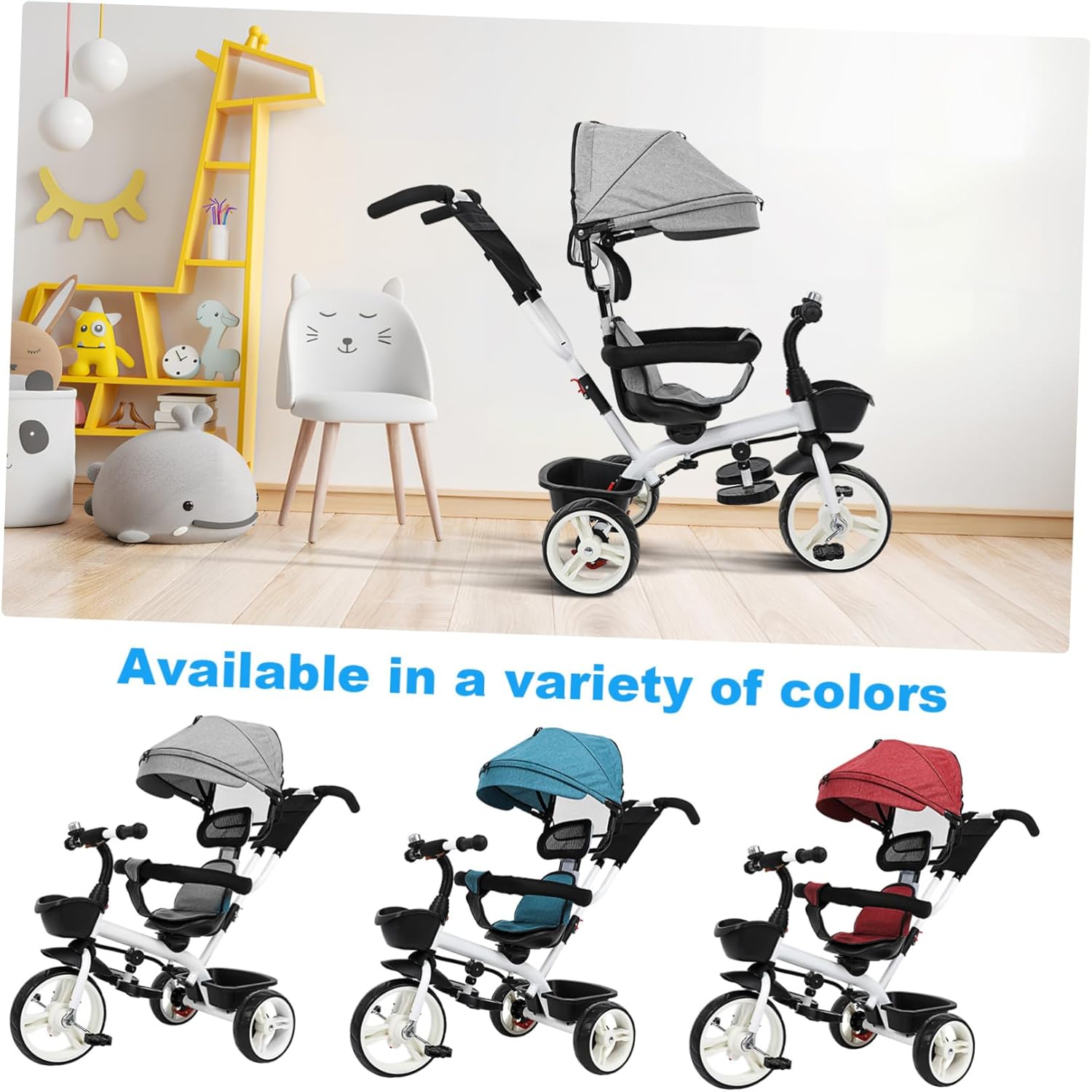 Triciclo per bambini: questo passeggino è dotato di un design parasole che evita efficacemente la luce solare diretta e mantiene il bambino fresco e comodo. triciclo per bambini, triciclo per bambini con maniglia di spinta Comodo e sicuro: questo passeggino triciclo in plastica e metallo è robusto e sicuro, garantendo durata e affidabilità Leggero e portatile: grazie alla sua struttura leggera, questo triciclo è facile da trasportare e riporre, ideale per viaggi e viaggi in famiglia, passeggino leggero, maniglia di spinta per bici da bambino Misura regolabile: il passeggino da bici può essere adattato alle dimensioni e all'età del tuo bambino, garantendo così una guida comoda e sicura, passeggino da bici, triciclo per bambini Aspetto elegante: con il suo design alla moda design, questo triciclo per bambini attira davvero l'attenzione e renderà il tuo bambino un vero e proprio eye-catcher. passeggino triciclo, triciclo per