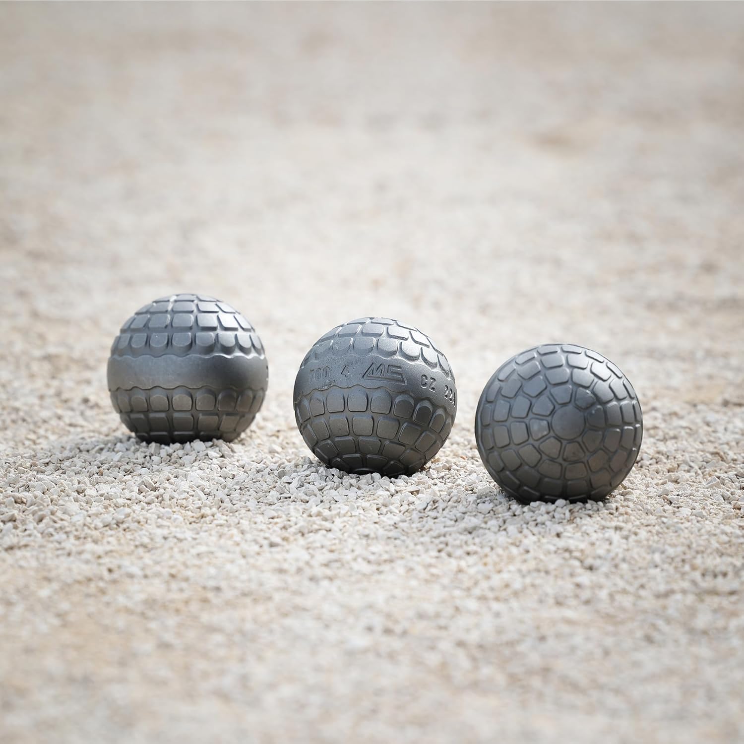 La triplice in acciaio inox esemplare al punto! Il regalo ideale per gli amanti dell'originalità! Optare per il modello iconico MS Bocce con la CZ in acciaio inox e il suo aspetto tartaruga. Una triplice dura (135 kg/mm²) che ti sedurrà grazie alla tecnologia anti rimbalzo e al suo stile unico! Ideale per i giocatori che cercano una forte presa in mano o semplicemente una tripletta facile da identificare! La sua finitura conferisce una leggera presa in mano accentuata dalle strisce molto pronunciate del suo design. Questo set di 3 palline omologate dalla FIPJP viene fornito con uno scopo omologato e un panno MS in microfibra (20 x 20 cm), il tutto accuratamente confezionato in una scatola di cartone. Lasciandoti la scelta di riutilizzare una vecchia borsa o di averne una dalla nostra gamma di borse MS Pétanque. Le nostre palline da competizione CZ sono progettate in acciaio inox, quindi non richiedono una manutenzione specifica. Si può notare una leggera ossidazione, solo in superficie dovuta alla finitura realizzata con sfere d'acciaio.