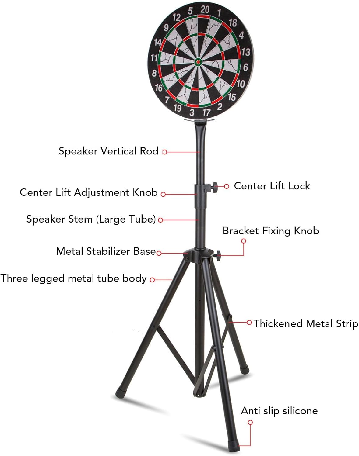 [Costruzione robusta e duratura] Realizzato in acciaio inossidabile premium, questo stand di gambe garantisce stabilità e durata senza pari. Il suo design pesante garantisce che possa gestire un gameplay intenso senza oscillare o ribaltarsi, rendendolo per i giocatori casuali e competitivi che richiedono affidabilità. [Easy Assembly and Portability] Say Goodbye a DartBoards montato a parete! Questo supporto presenta un design intuitivo che consente una configurazione rapida e una piegatura senza sforzo. La sua forma compatta se piegata lo rende ideale per lo stoccaggio e il trasporto, in modo da poter godere di freccette ovunque, in qualsiasi momento. [Supporto triangolare regolabile] Ingegnerizzato con una solida base triangolare, questo supporto offre una stabilità superiore. L'altezza è regolabile da 132 cm a 220 cm, per i giocatori di tutte le età e livelli di abilità. Non più lotta con gli stand a hireight: questo si adatta alle tue esigenze. [Impostazioni di altezza bloccabile] Precision Matters in Darts e questo supporto fornisce le sue impostazioni di altezza bloccabile. Regola facilmente il dardo sulla tua altezza preferita e bloccalo ogni volta per un'esperienza di lancio coerente e professionale. [Versatile e divertente per tutti] Sia che tu stia organizzando una festa nel cortile, ti stai allenando per un torneo o semplicemente godendo di un gioco casuale, questo stand è la tua soluzione di riferimento. Il suo design universale e la costruzione robusta assicurano infinite ore di divertimento ed eccitazione per i giocatori di tutti i livelli.