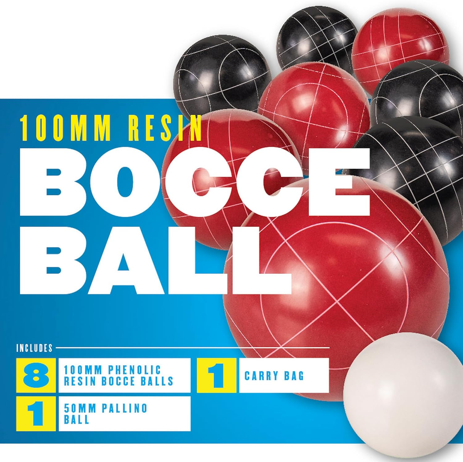 Aggiungere questo gioco usare alla tua collezione Outdoor Set comprende otto 100 mm in resina solida bocce palle (4 rosso, 4 nero) Il set comprende anche un 50 mm bianco palino/Jack Pezzi di gioco tutti facili da pulire con un panno umido Trasporto gioco pezzi in borsa da trasporto inclusa per una facile memorizzazione