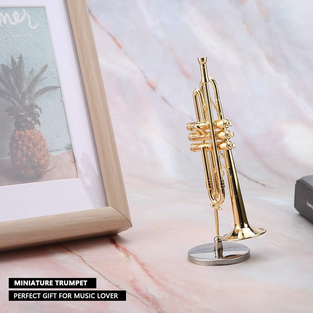 [Materiale premium] realizzato in ottone con meticolosa tecnica di placcatura in oro per una finitura di alta qualità. [Decorazioni versatili] viene fornito con uno stand per una facile visualizzazione su librerie, scrivanie o sale da musica. [Design squisito] Dettagli intricati dal bocchino a Bell rendono questa tromba in miniatura un pezzo unico. [Repy Ready] Include una in legno per lo stoccaggio, per Natale o compleanni. [] Ideale per bambini o amici musicisti, portando gioia e ispirazione musicale.