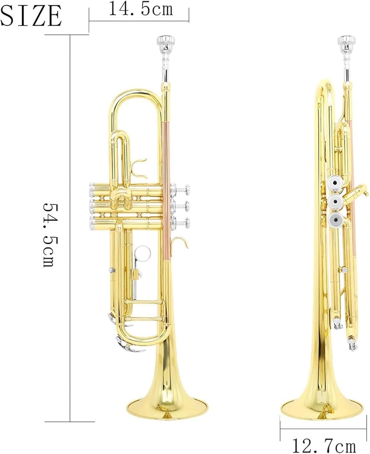 Il corpo è realizzato in ottone splendidamente laccato e presenta un design resistente e fluido a doppia valvola. Il pistone è reattivo e confortevole, la molla si riavvolge rapidamente ed è ermetico. Questa tromba ha un suono brillante e risonante. La particolare consistenza dell'ottone permette alla tromba di vibrare facilmente, offrendo un'esperienza sonora superiore a principianti e amatori. Questa tromba è progettata per i professionisti e soddisfa le esigenze di musicisti e artisti esperti. Progettato per ottenere un suono ricco e risonante, è perfetto per le esibizioni in gruppo. In caso di problemi con il prodotto o domande, non esitate a contattarci: il nostro eccellente team di assistenza clienti è sempre pronto ad assistervi.