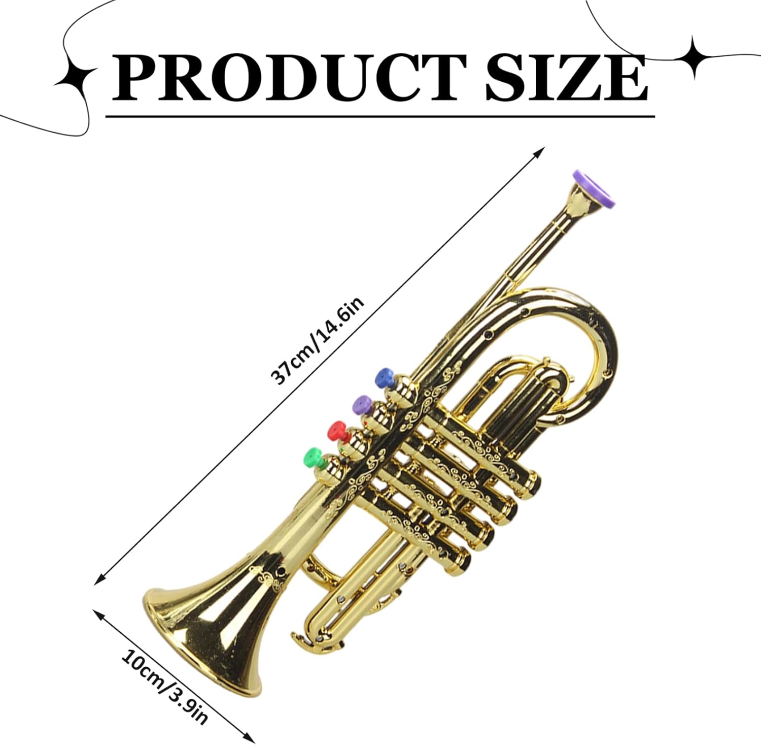 Finitura brillante e accattivante: la finitura dorata e lucida della tromba in plastica cattura l'attenzione e stimola il gioco fantasioso;.i colori vivaci e la superficie liscia lo rendono un attraente giocattolo musicale o un regalo per le feste che motiva i bambini a prendere in mano il proprio strumento e suonare. Design sicuro e affidabile: realizzata in plastica PP atossica con bordi arrotondati e una comoda impugnatura, questa tromba giocattolo è una struttura robusta e infrangibile che resiste al gioco attivo offrendo ai genitori tranquillità riguardo alla sicurezza e all'uso duraturo. Suono reale riproducibile: progettata per toni chiari e piacevoli con valvole facili da premere, questa tromba per bambini offre un feedback musicale autentico che incoraggia la pratica ritmica iniziale e la sicurezza;.ideale come strumento musicale per bambini iniziale per l'esplorazione creativa. Valore di gioco educativo: come strumento musicale per bambini, questa tromba promuove le capacità motorie, il controllo del respiro, l'ascolto e l'interazione sociale attraverso il gioco condiviso;.progettato con cura per coltivare la creatività, la fiducia e il legame genitore-figlio senza complessità. Design portatile e di facile manutenzione: leggero con una comoda impugnatura ergonomica, questo giocattolo musicale per bambini è perfetto per appuntamenti di gioco, lezioni o viaggi;.semplice da pulire dopo il gioco e facile da trasportare per le mani dei più piccoli, così la musica in movimento è semplice.