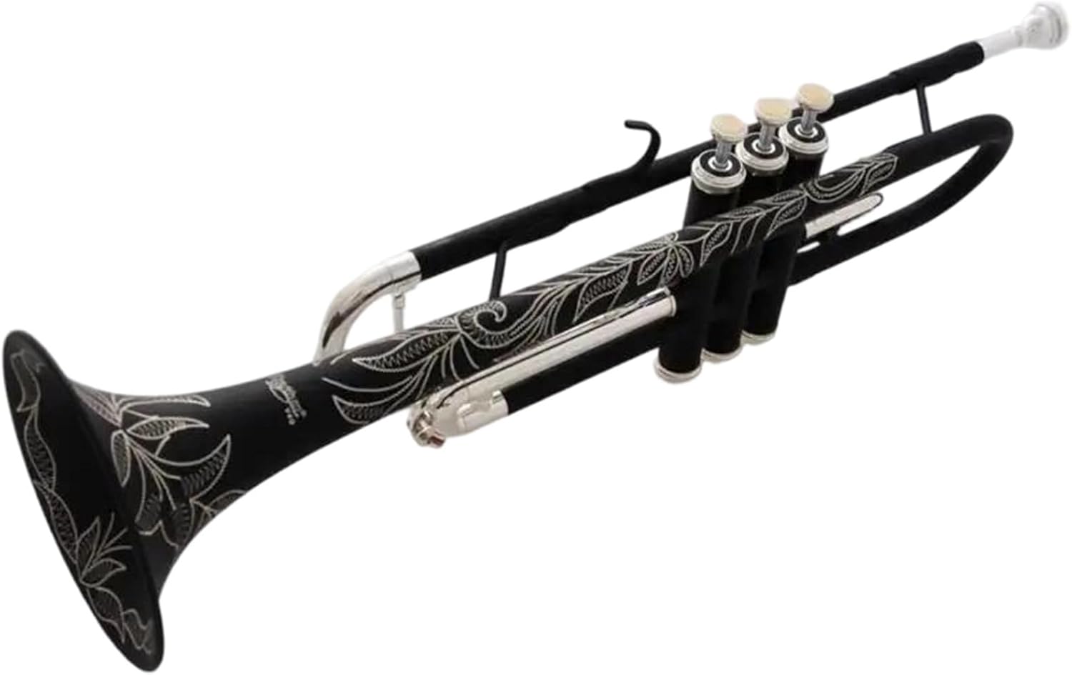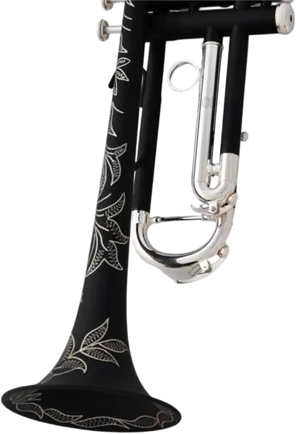 Tromba Tromba In Sib Nera Opaca E Argento Con Chiave Incisa A Mano E Custodia