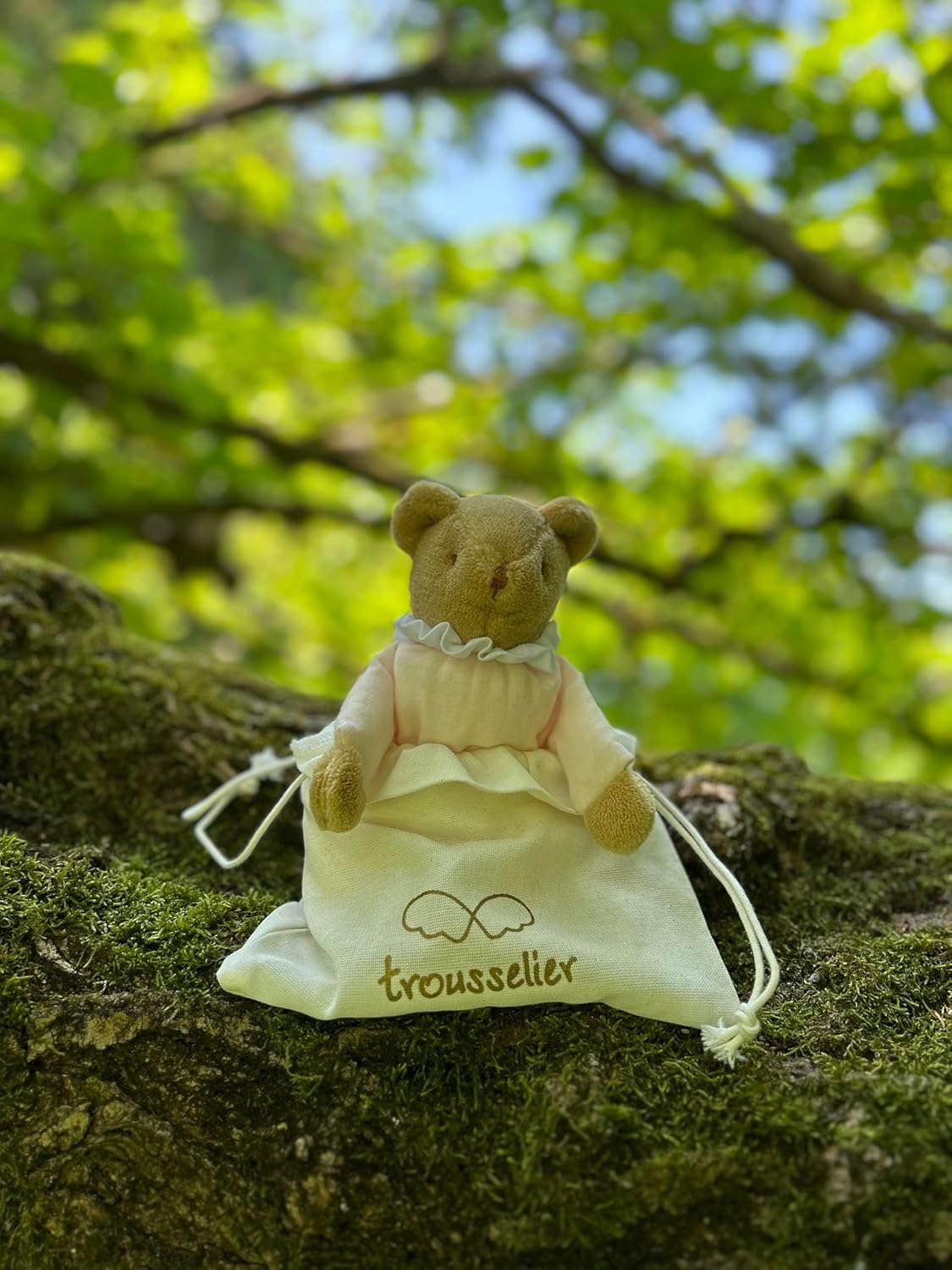 Trousselier - Doudou Bebe Bebe Orso Nido d'Angelo con Sonaglio - Orso di Peluche Cotone Bio Rosa Polvere - Regalo Nascita Neonato Ragazza - Orsacchiotto 20 cm - Doudou Nascita Bambina