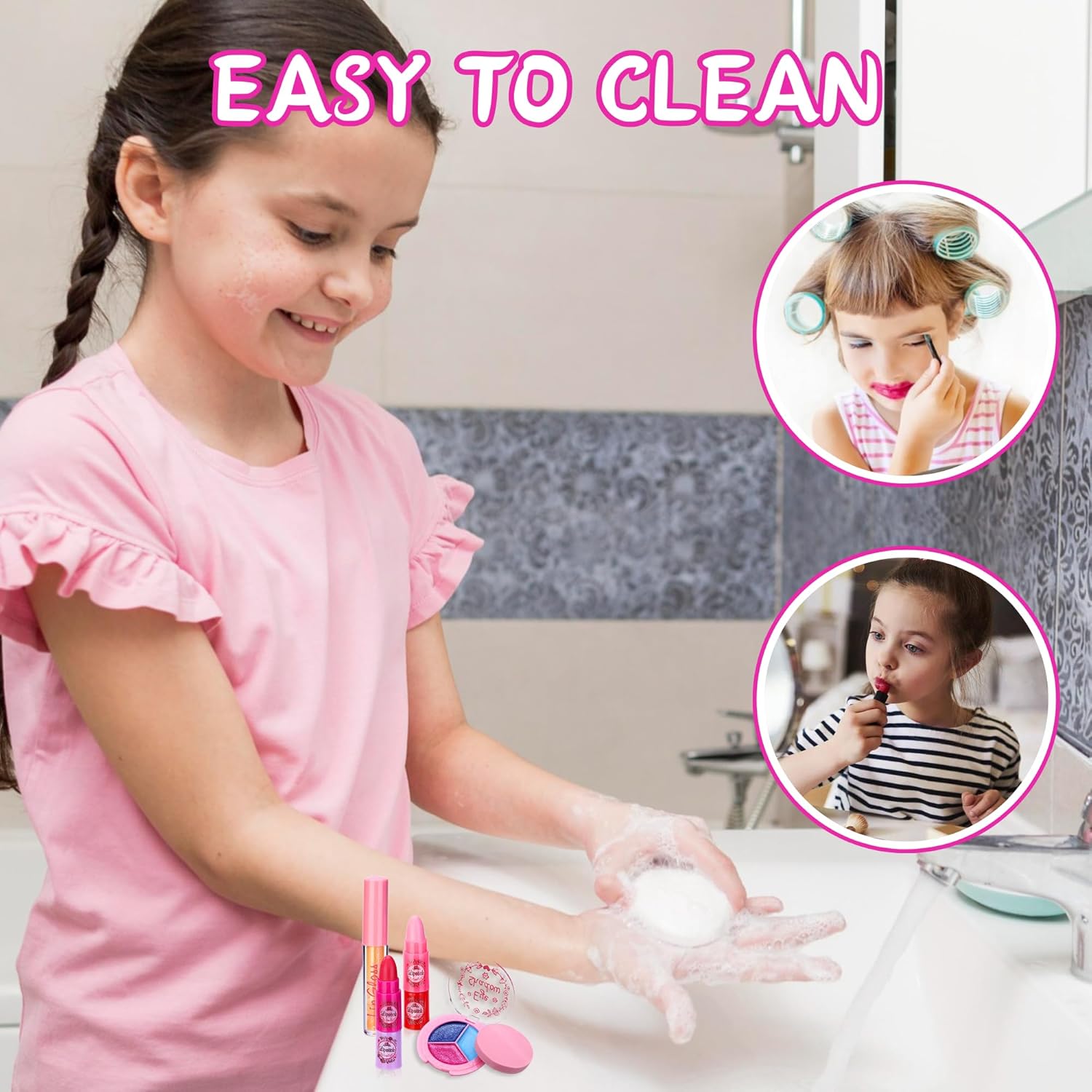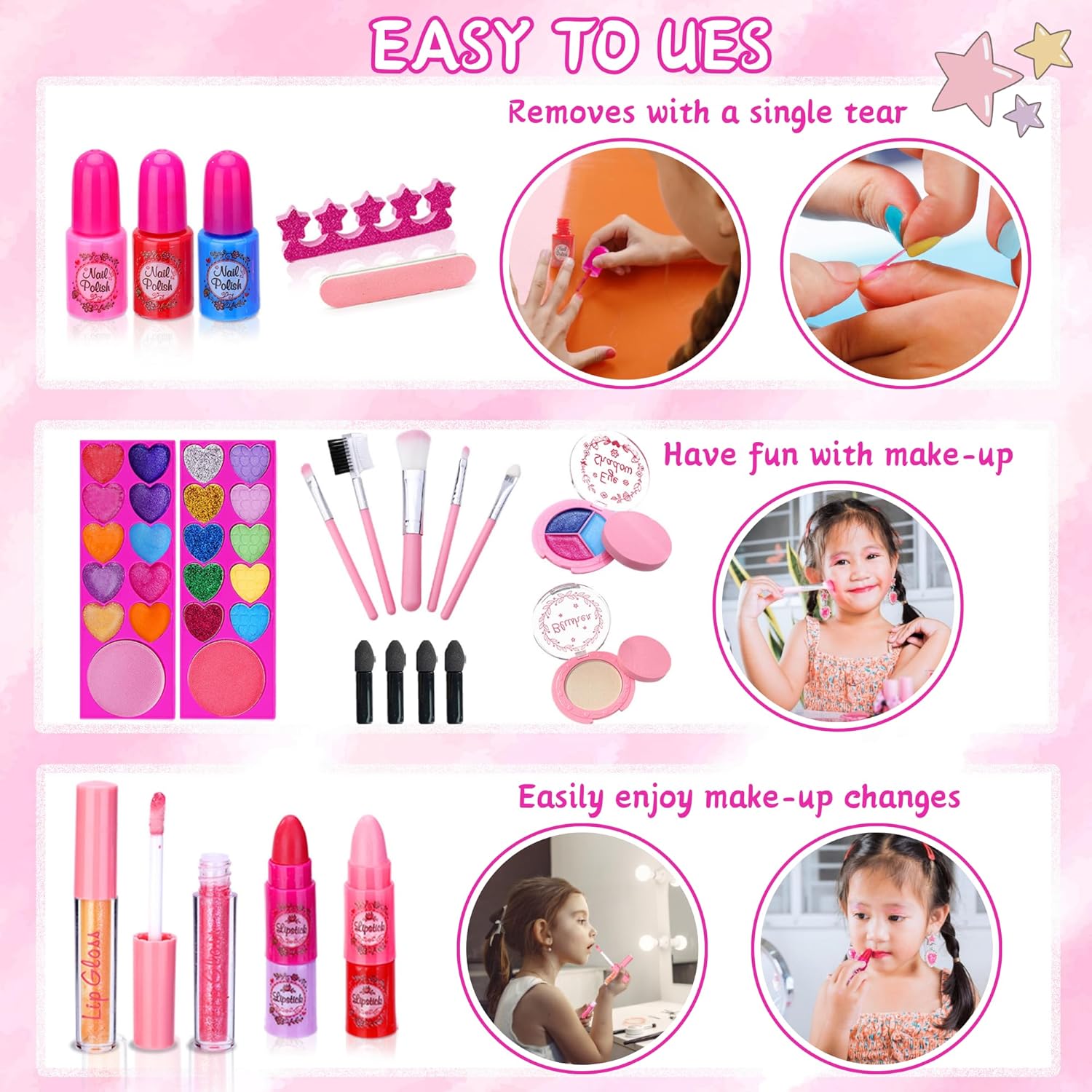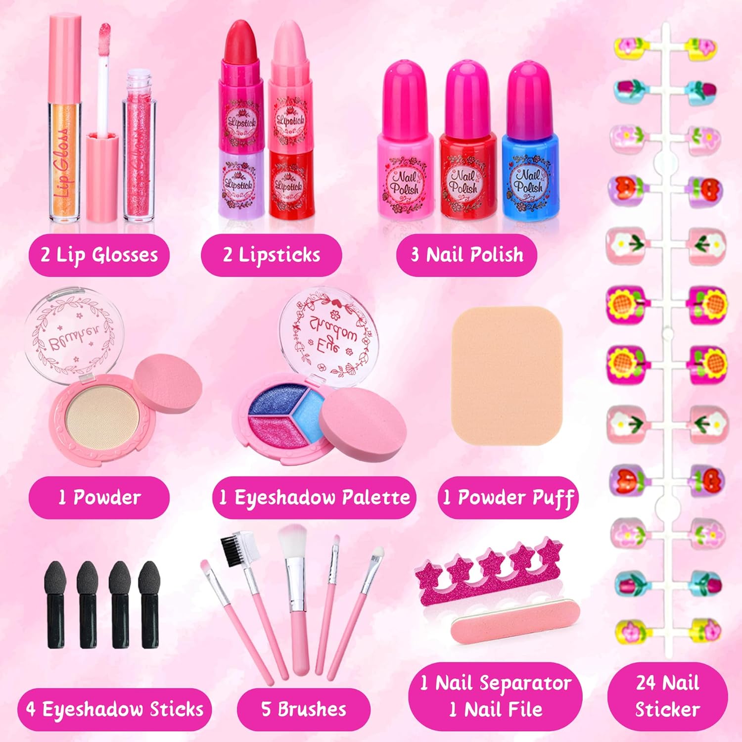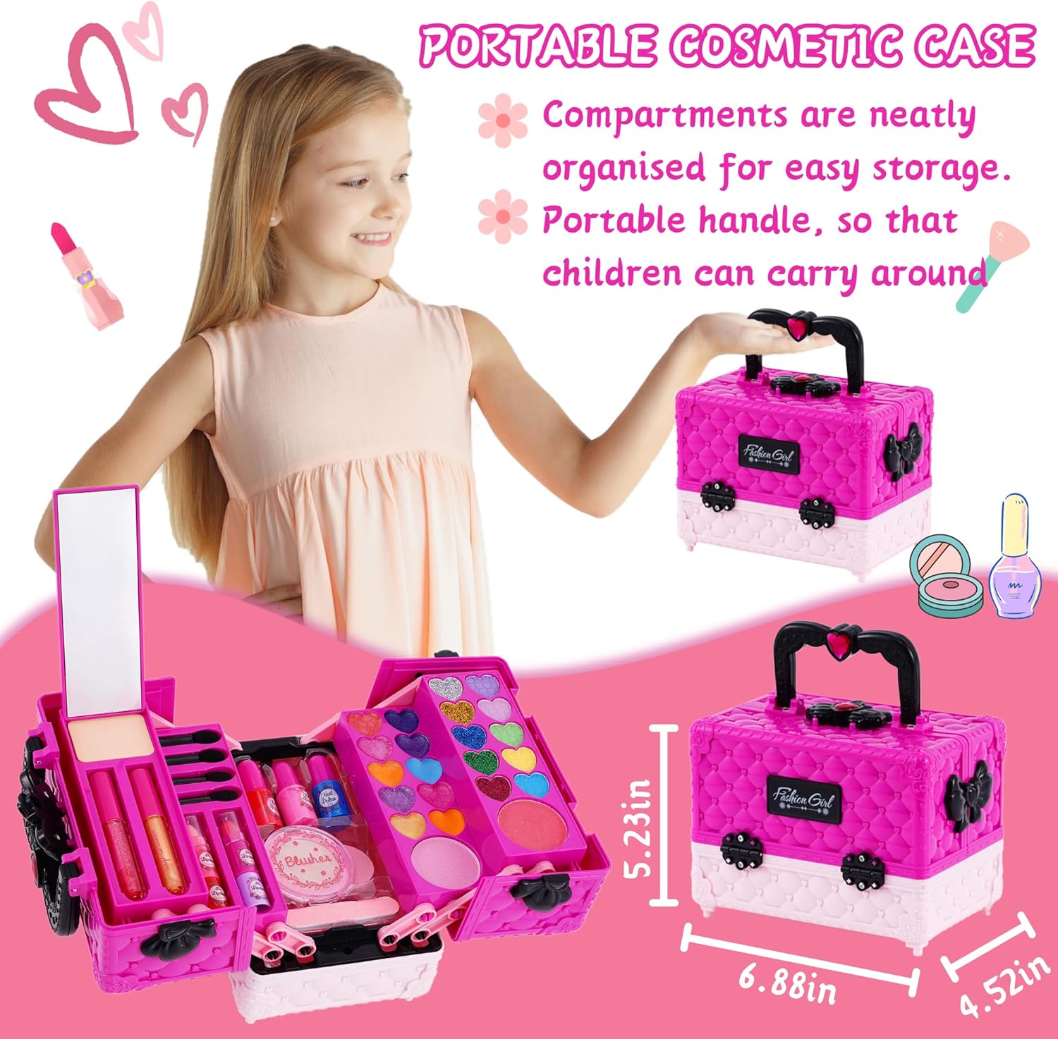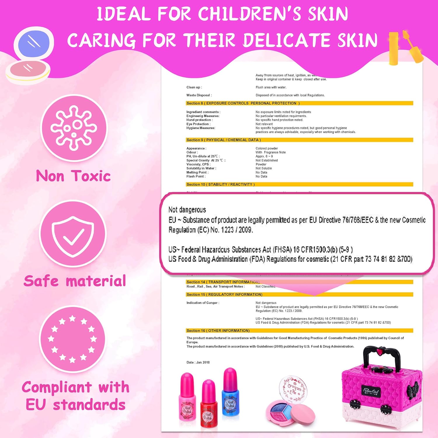 【Cofanetto per il trucco dei bambini】 Il set comprende: cipria *1, fard *2, ombretto per bambini *10, glitter *5, lucidalabbra *5, smalto per unghie *3, astuccio per ombretto *1, rossetto *2, lucidalabbra *2, separatore per dita *1, lima per unghie *1, pennello *5, ombretto in stick *4, specchietto *1, puff *1, adesivo per unghie *24, un coloratissimo cofanetto per il trucco dei bambini tutto in uno. 【Sicuro e lavabile】 Sicuro e lavabile! Realizzato con materiali sicuri e solubili in acqua, tutti i materiali sono atossici, ecologici, morbidi e rispettosi della pelle, possono essere lavati con acqua e sapone, non irritanti, perfetti per la pelle dei bambini, per prendersi cura della pelle delicata. Lasciate che i cari angioletti si divertano a truccarsi! 【Custodia per il trucco portatile】 Il design interno della scatola per il trucco è ragionevole, i piccoli scomparti sono ordinati e puliti, la capacità è abbastanza grande da facilitare l'uso e l'organizzazione del bambino, e la maniglia di trasporto portatile, in modo che i bambini possano portare con sé e godersi facilmente la gioia del cambio di trucco! Tieni la moda sempre e ovunque, un must per i viaggi e le feste, mostra il tuo stile di moda! 【Soddisfa la curiosità dei bambini】 Scatenate la creatività, provate con coraggio, coltivate la capacità estetica e di apprendimento, i piccoli fashionisti mostrano il loro fascino e la loro personalità. Lasciate che i bambini si liberino dei vincoli, esplorino il divertimento del make-up, stimolino la loro creatività e capacità estetica e sperimentino il fascino infinito del trucco! 【Regali significativi per le bambine】 Il regalo perfetto per le piccole principesse sognatrici, non solo per ispirare la loro ricerca della bellezza, ma anche una rara opportunità di vestirsi con la mamma. Compleanni, Halloween, Natale, quale festa non è adatta a questo divertente regalo? Lasciate che la bellezza cresca con loro!