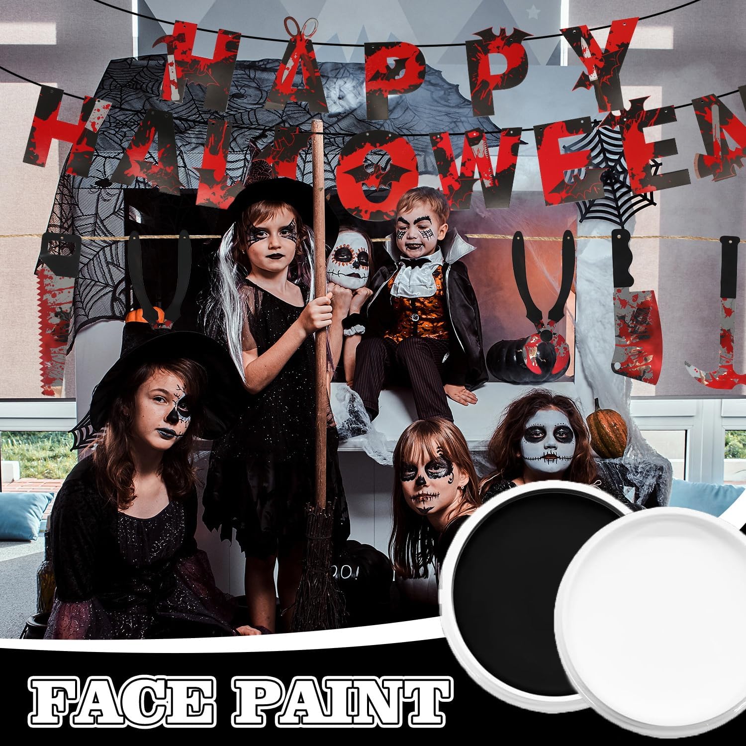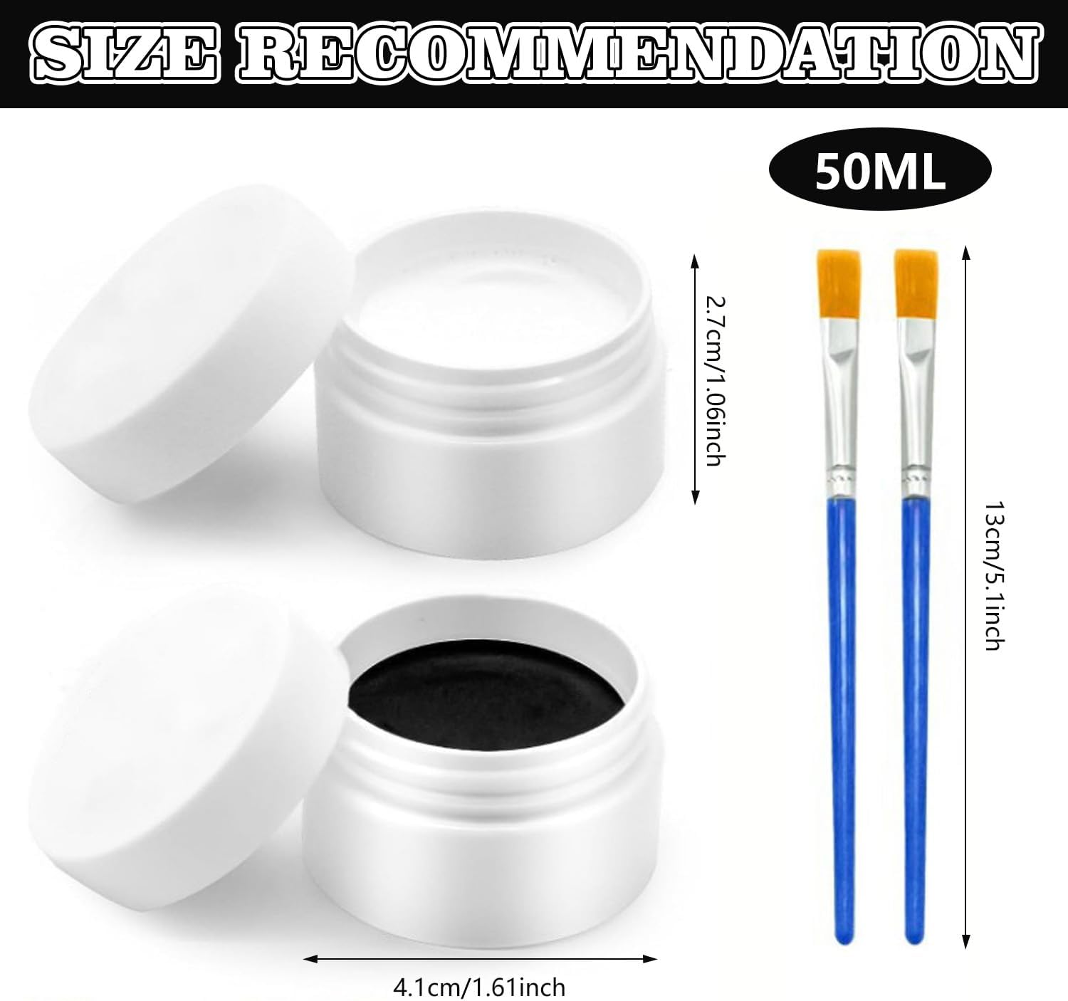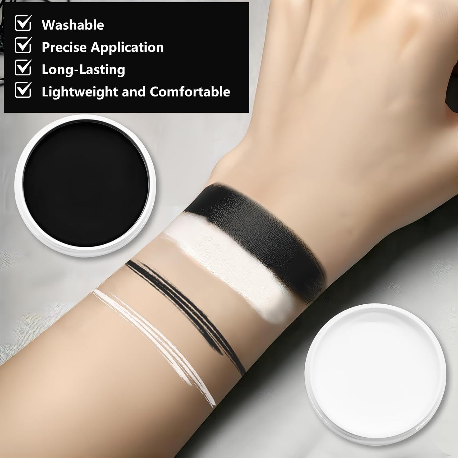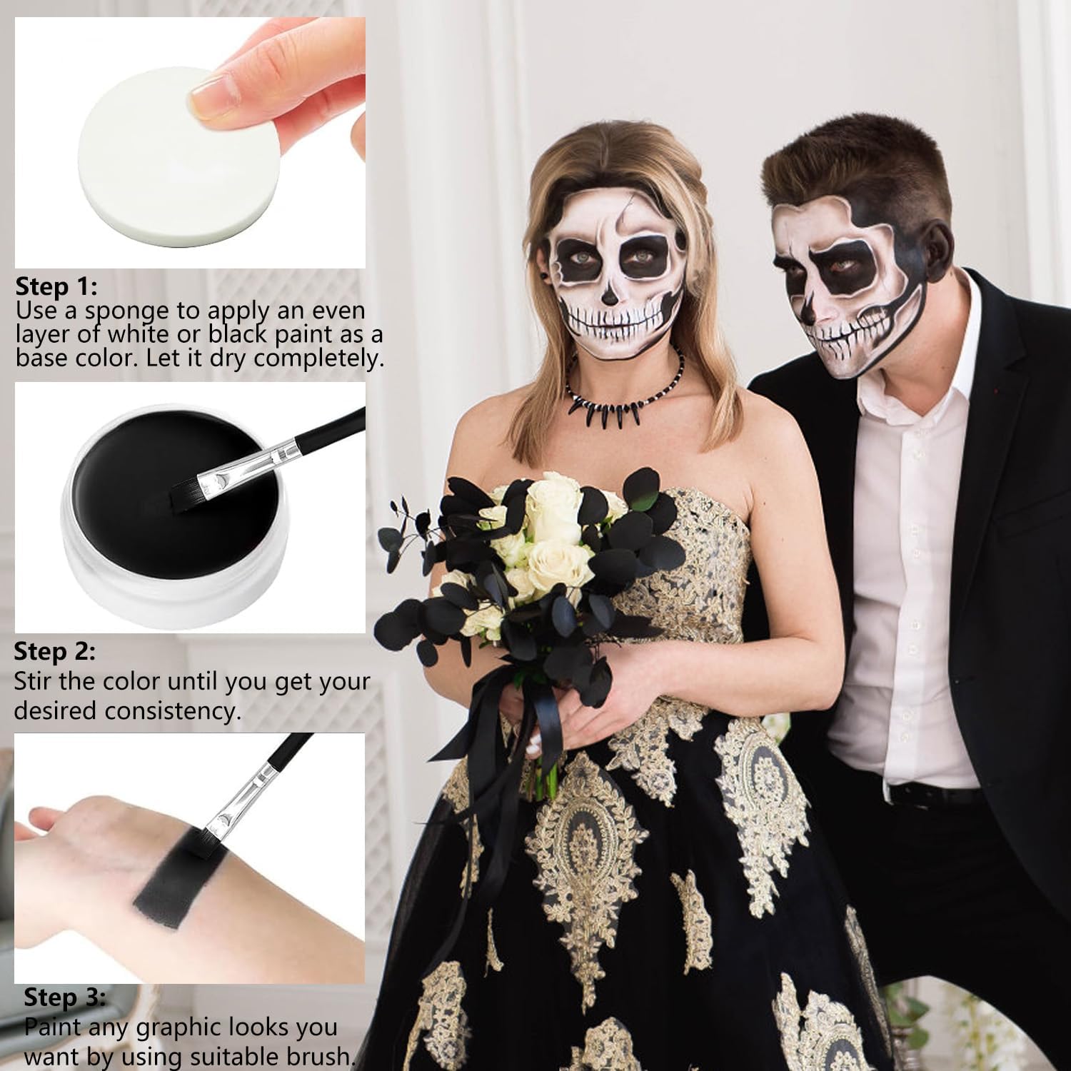 Trucchi Bianco E Nero Per Viso Halloween: Questo set per il trucco di Halloween contiene Nero 50 g + Bianco 50 g + 2 pennelli per trucco. Trucchi Halloween Adatto per il trucco di adulti e bambini. Confortevole Delicato Sulla Pelle: La trucchi halloween nostra pittura per il viso è realizzata con materiali di alta qualità, è facile da colorare, ha una consistenza morbida e delicata, ha un elevato potere coprente. La spazzola inclusa ha fibre sottili e non perde facilmente peli. Si consiglia di effettuare un test allergico dietro l'orecchio prima dell'uso ArtíCulos Para Fiestas: Questo trucco di Halloween in bianco e nero è un must per qualsiasi festa di Halloween, trucchi halloween ed è perfetto per il face painting e il body painting. Facile Da Usare E Da Pulire: Pulisci il viso e applica una crema idratante prima dell'uso. La nostra vernice per il viso è facile da usare e può essere applicata sulla pelle con una spugna, un pennello o con la punta delle dita. I pigmenti si rimuovono facilmente con acqua tiepida e sapone. Se c'è ancora del pigmento, usa uno struccante per rimuoverlo. Ampia Gamma Di Applicazioni: Come trucco, è adatto a varie celebrazioni e feste come Halloween, carnevale, trucco teatrale, feste di compleanno, feste in maschera, cosplay, spettacoli teatrali, ecc.
