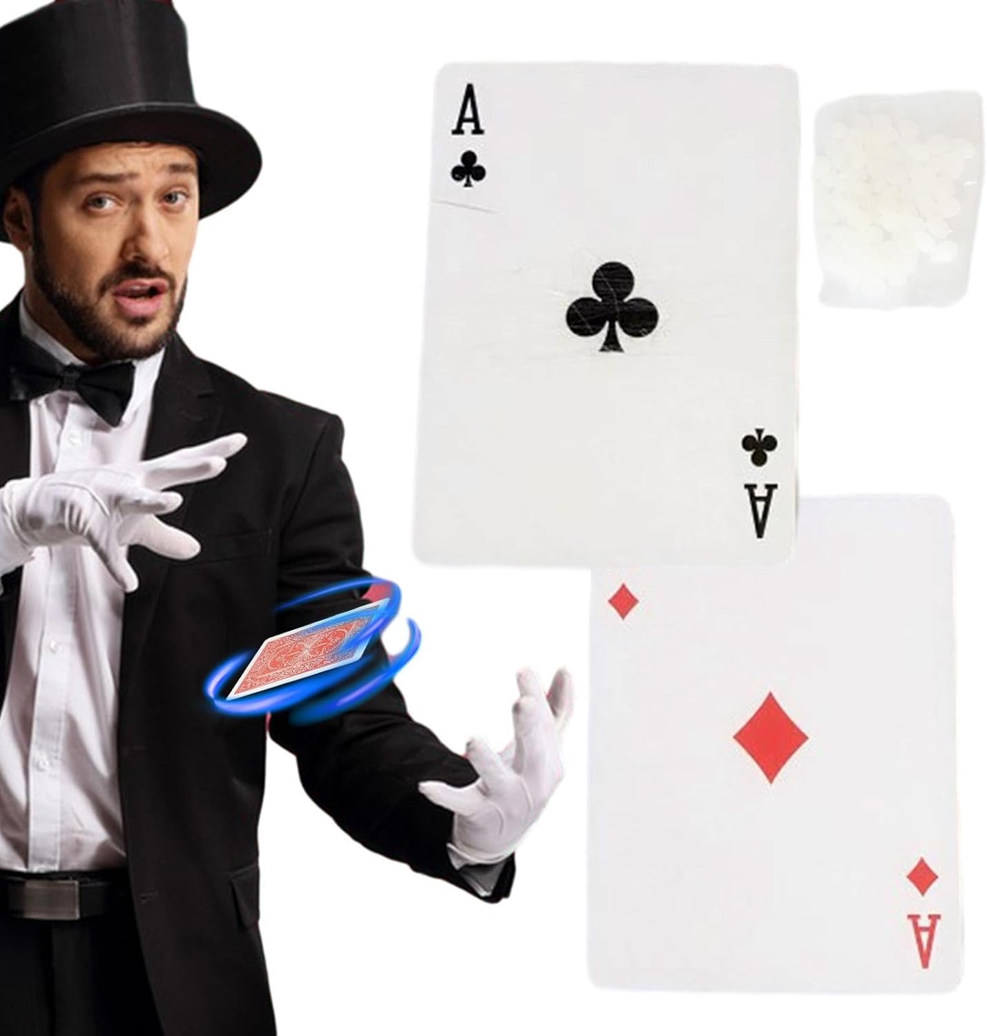 ➪Entra nel mondo dell'illusione: stupisci il tuo pubblico con trucchi incredibili come fluttuare, scomparire e altro ancora. Lascia che queste carte ti aiutino a diventare un maestro mago e a creare uno spettacolo di magia indimenticabile che stupirà tutti quelli intorno a te. ➪Semplicemente sbalorditivo: con tecniche facili da apprendere e cera magica che si attacca e filo invisibile che si nasconde, puoi creare un'illusione straordinaria che lascerà il tuo pubblico desiderare di più. ➪Aumenta il fascino: puoi fluttuare, spostare o persino trasformare le carte senza sforzo. Prova l'emozione di trucchi impressionanti e migliora l'atmosfera di ogni incontro. ➪Ampia applicazione: che tu sia a scuola, al bar, a KTV o in una riunione di famiglia, queste carte ti renderanno al centro dell'attenzione e aggiungeranno più entusiasmo al tuo. ➪Alta qualità: gli oggetti di scena sono realizzati con materiali eccellenti, durevoli e non facili da danneggiare. L'elasticità della linea nascosta è moderata e non è facile cadere o rompersi.