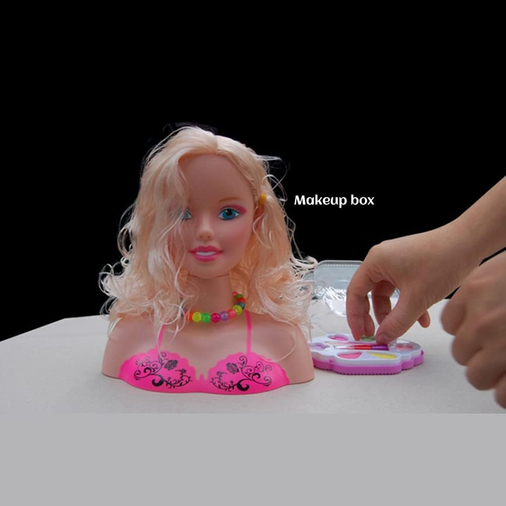 materiale plastico, forte e non facile da danneggiare. Vieni con 17 accessori, vesti come preferisci. Forte giocabilità, consente ai bambini di imparare i capelli e il trucco mentre giocano, aumentando l'interazione genitore-figlio. Ambito di applicazione: casetta per giochi, trucco, vestire. La dimensione della bambola è di 21 x 19 cm