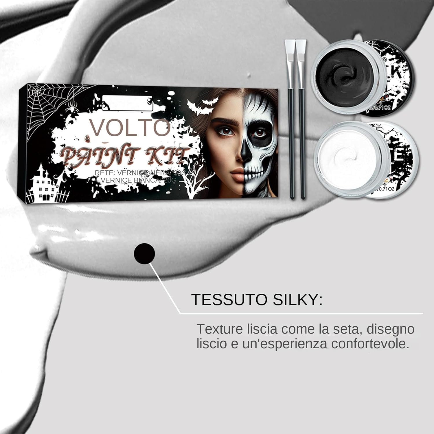 ✼Delicato sulla pelle: formulato con ingredienti per il trucco delicati e non irritanti, questa vernice per il viso in bianco e nero garantisce zero oneri sulla pelle, rendendola adatta a tutti i tipi di pelle, compresa quella sensibile. ✼Bianco e nero: le nostre tonalità si adattano perfettamente al tema spettrale, creando un forte contrasto per una trasformazione facile e veloce in fantasmi, zombie o personaggi classici dei film in bianco e nero. ✼Utilizzo semplice: libera la tua creatività con la nostra vernice per il viso in bianco e nero. La nostra vernice per il viso garantisce una facile applicazione, anche i pittori alle prime armi possono creare disegni affascinanti. ✼Trucco a lunga durata: mantieni un trucco perfetto per tutta la notte con la nostra formula impermeabile e resistente al sudore, rendendoti la presenza più brillante alla festa, poiché garantisce che la colorazione sia salda anche sotto risate, balli e persino sfregamenti leggeri. ✼Pulizia senza sforzo: dì addio sfregamento energico poiché la nostra vernice per il viso in bianco e nero può essere facilmente rimossa con un normale detergente o struccante, senza causare danni alla pelle.